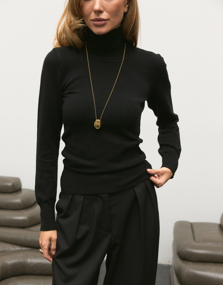 Доставка впродовж 5-7 робочих днівНайбільш універсальна річ у гардеробі — гольф, який ідеально сідає по фігурі та пасує до всього. Він не обтяжує образ, а доповнює його: під жакет, пальто чи светр, у парі з джинсами або класичними брюками.