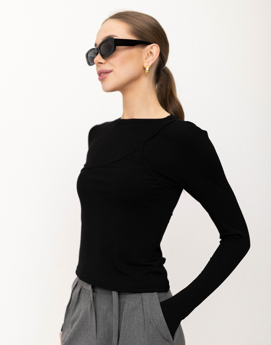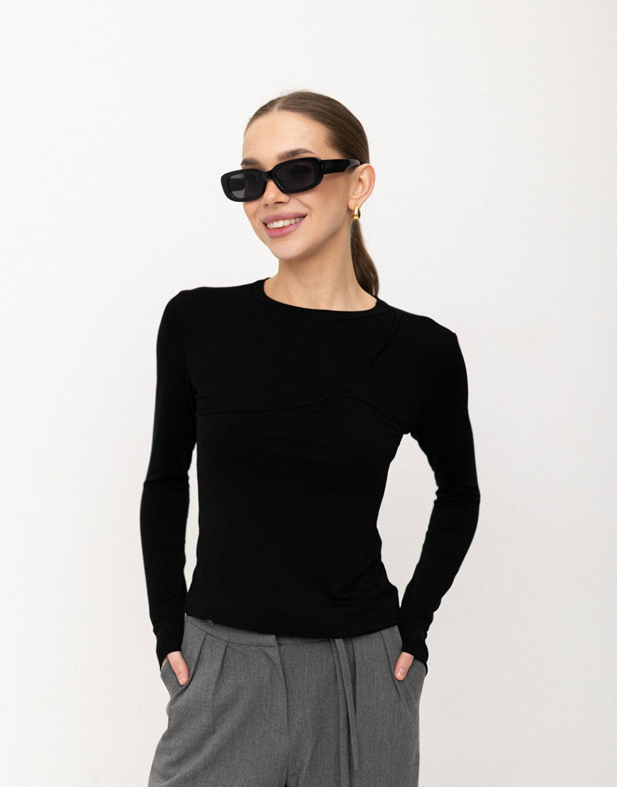 Доставка впродовж 5-7 робочих днівЛонгслів з імітацією чорний