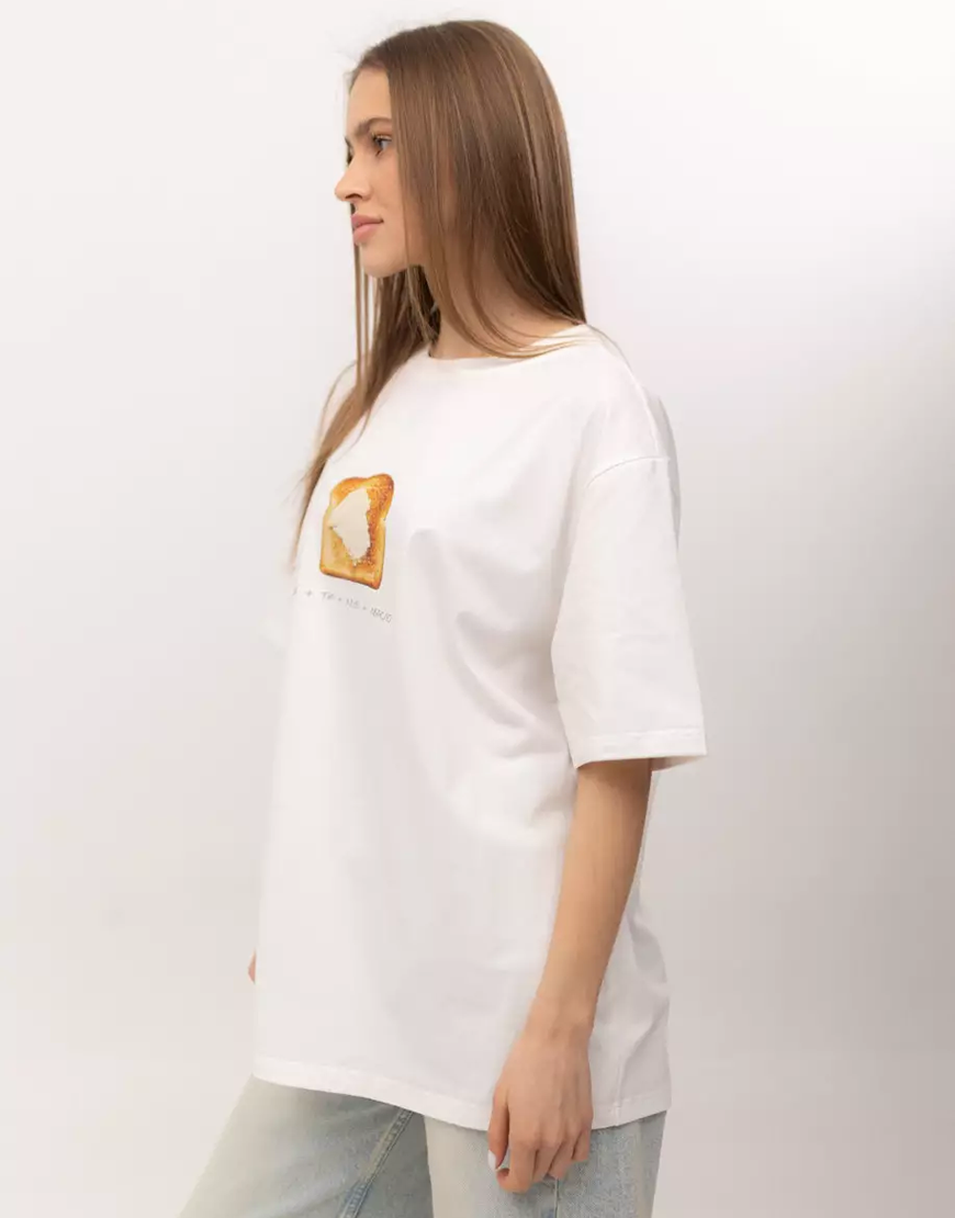 Доставка впродовж 5-7 робочих днівФутболка оверсайз BREAKFAST – це стильний і комфортний елемент гардеробу, який поєднує в собі зручність і модний вигляд. Вона має вільний крій, що робить її комфортною для носіння протягом дня, а також дозволяє створювати різноманітні образи.
