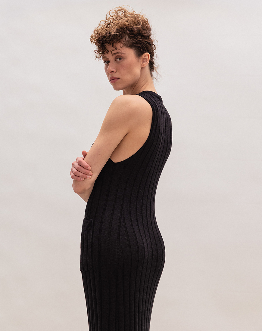 Трикотажна сукня у довжині максі, створена для тих, хто цінує якість натуральних волокон та функціональний дизайн. Щільна, але м’яка в’язка з бавовни добре тримає форму, не деформуючись при тривалому носінні. Акцентна фурнітура у вигляді ґудзиків та накладні кишені додають лаконічній моделі текстурності та завершеності. Довжина максі робить образ зібраним та статусним, водночас залишаючи відчуття повної свободи. Це універсальний виріб для міжсезоння, який гармонійно поєднується як із грубими черевиками та шкіряними куртками, так і з витонченим взуттям та класичними пальтами.