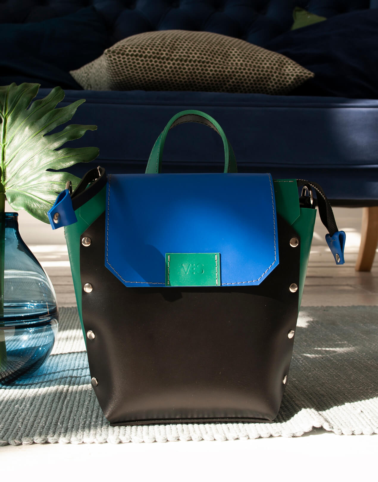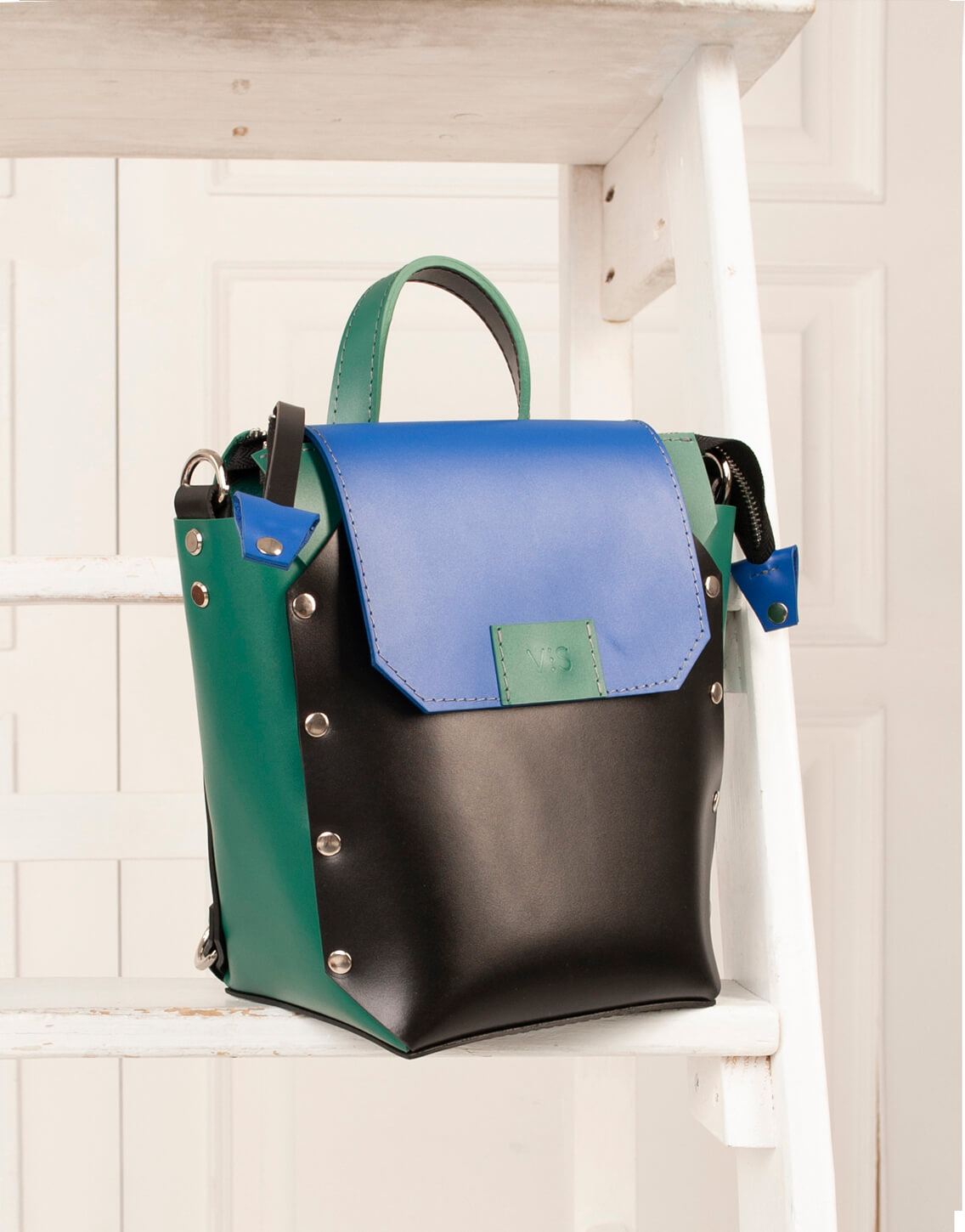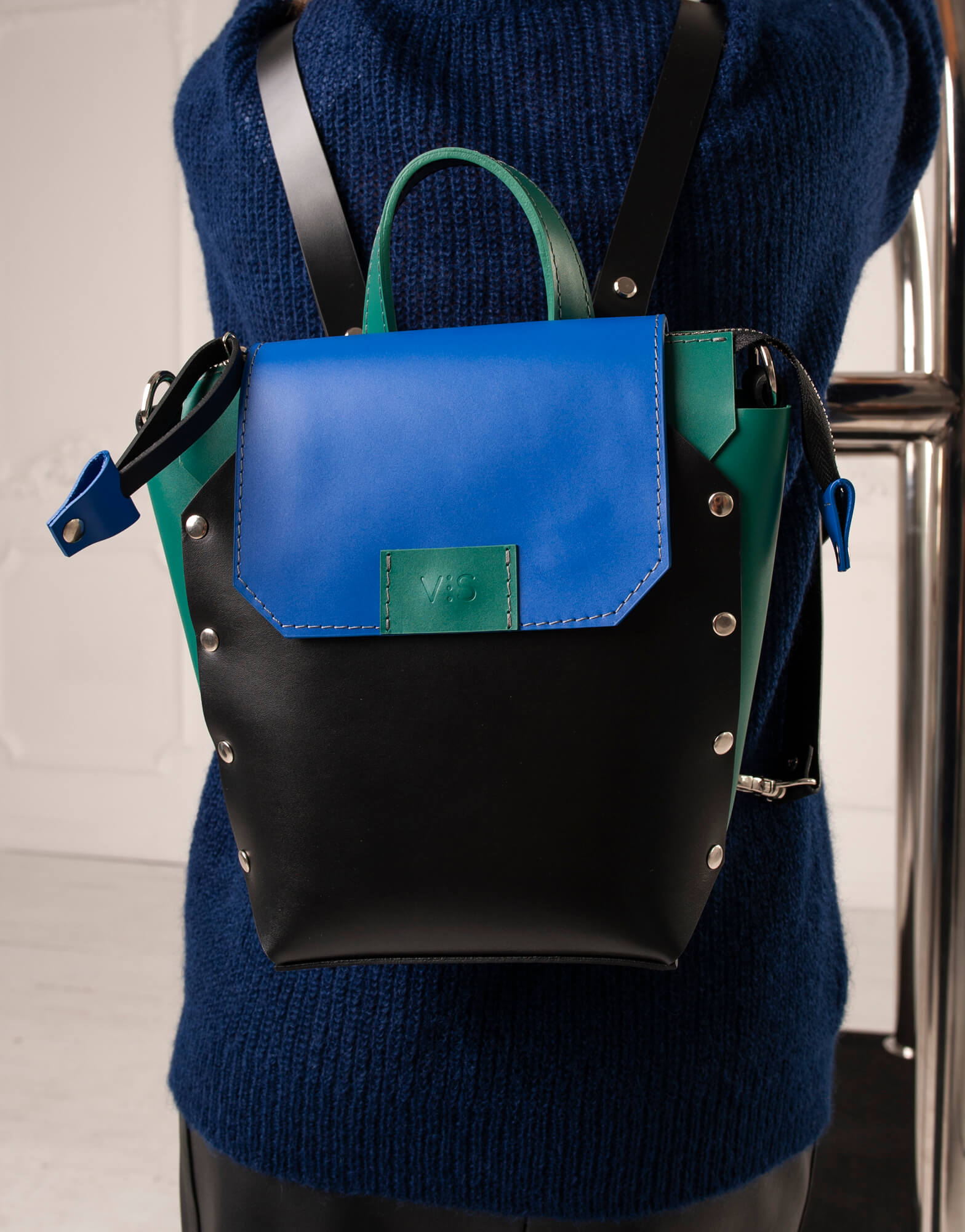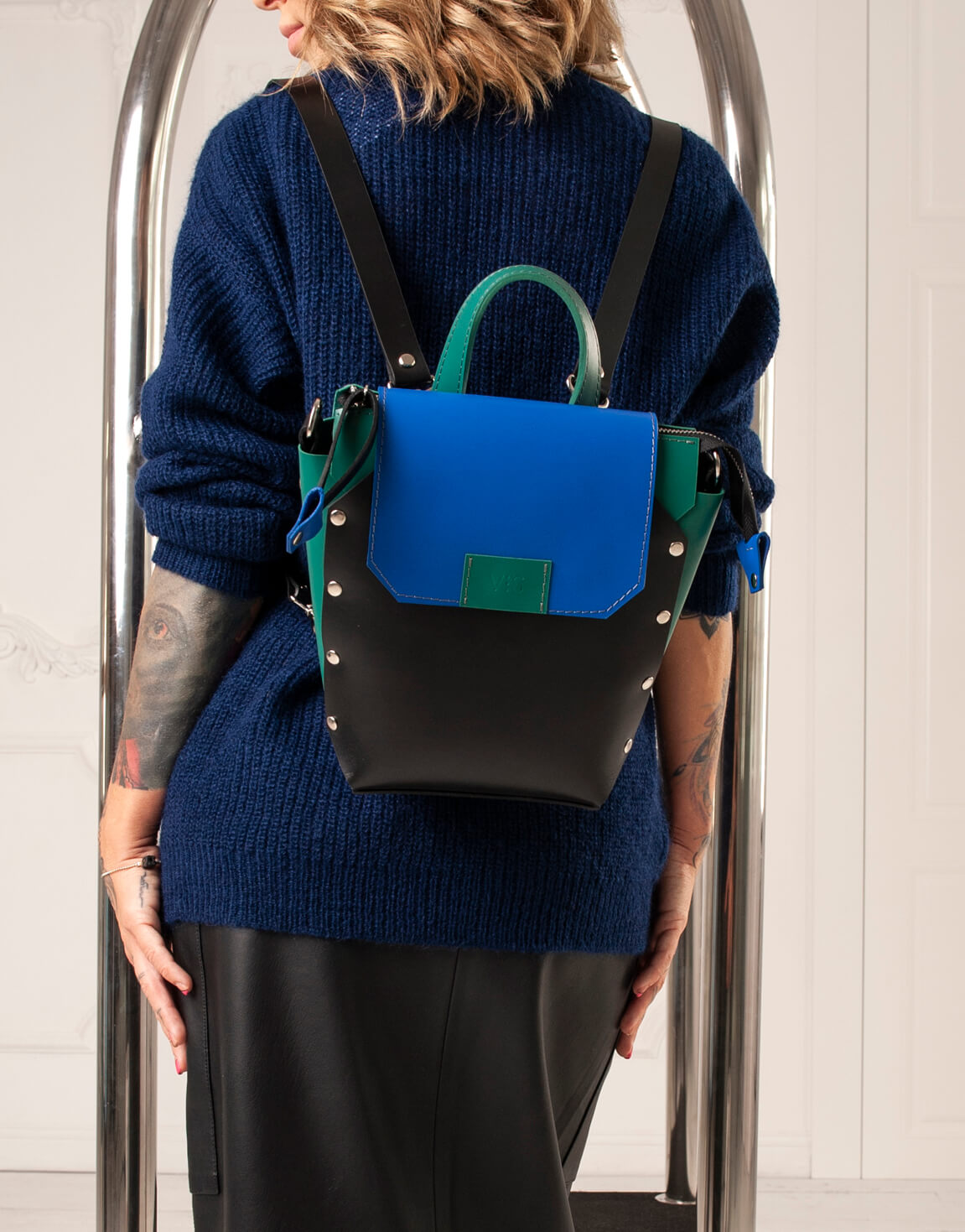 Корпус виконаний зі шкіри українського виробництва. Основне відділення закривається на кришку-клапан і магніт, а також блискавку. Усередині рюкзак має одне відділення та кишеньку з повсті. Розмір дна 15*13 см. Висота 21 см. Ширина вгорі 21 см.