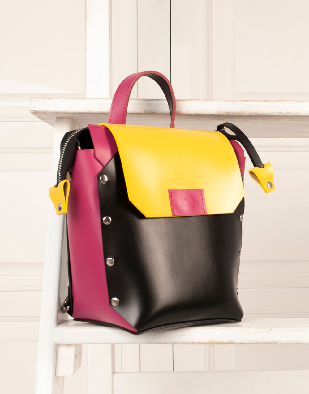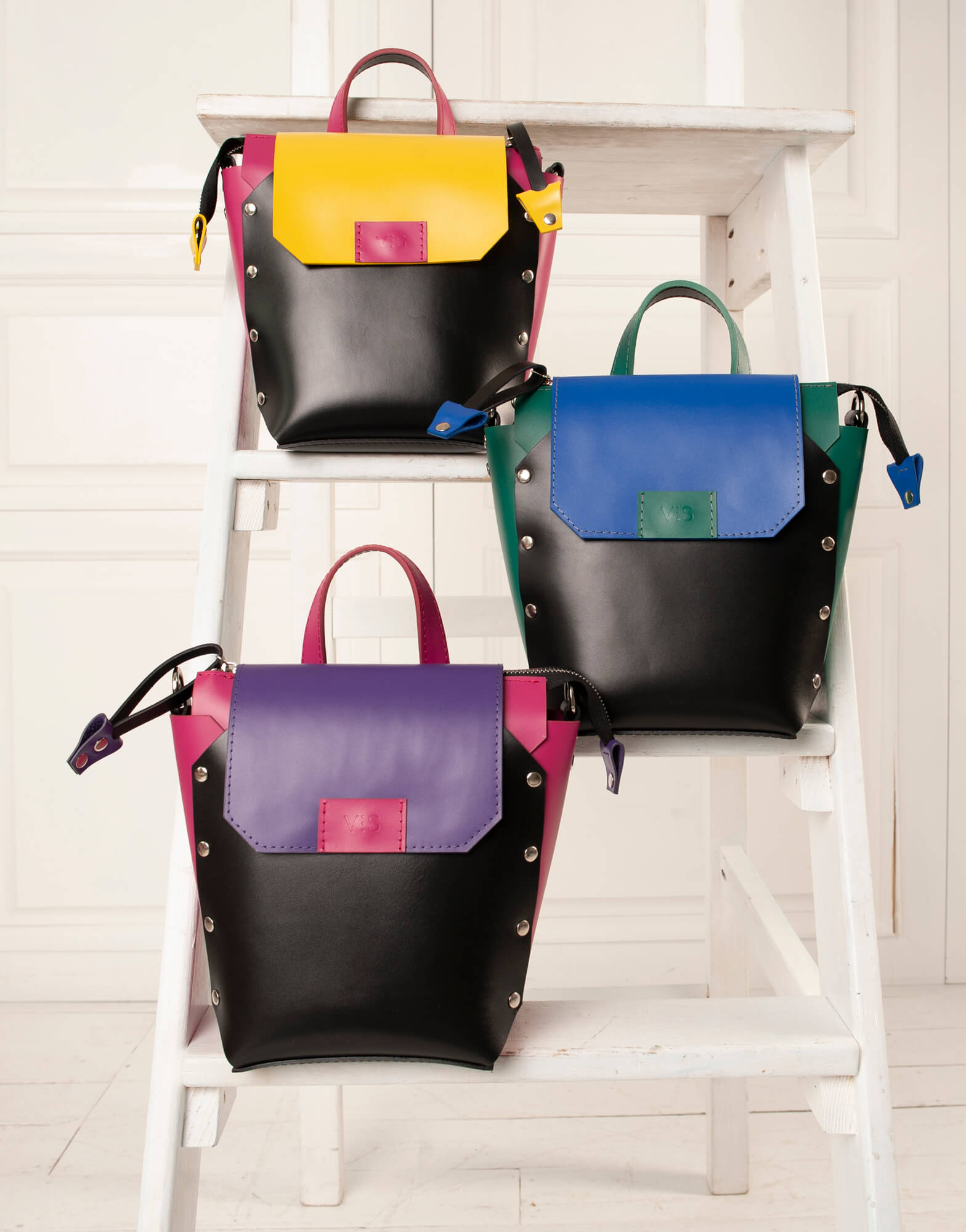 Корпус виконаний зі шкіри українського виробництва. Основне відділення закривається на кришку-клапан і магніт, а також блискавку. Усередині рюкзак має одне відділення та кишеньку з повсті. Розмір дна 15*13 см. Висота 21 см. Ширина вгорі 21 см.