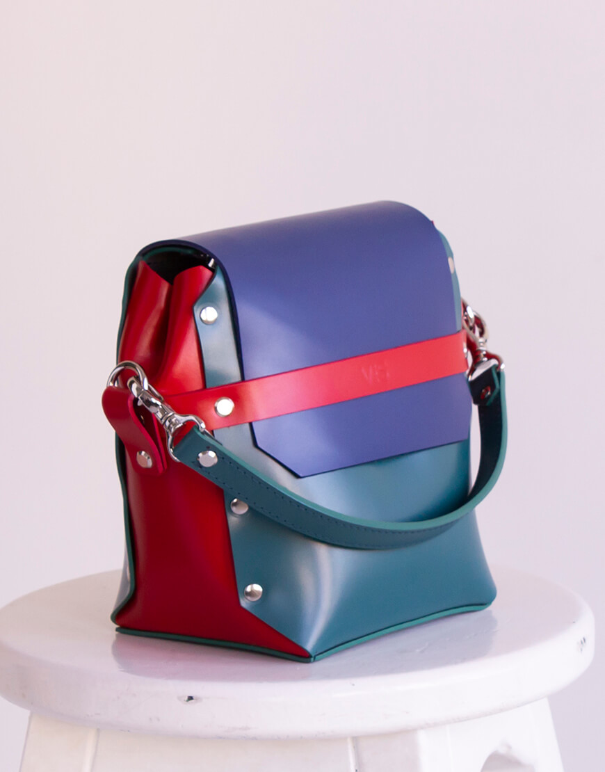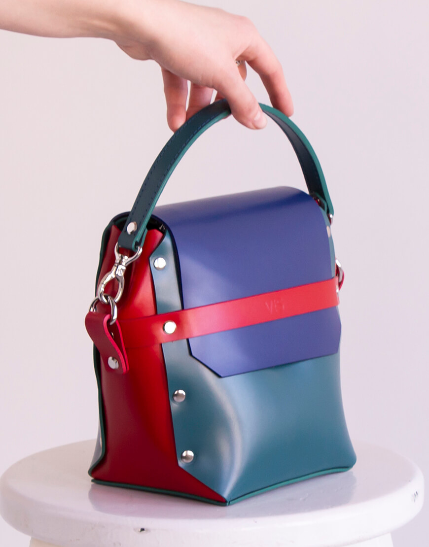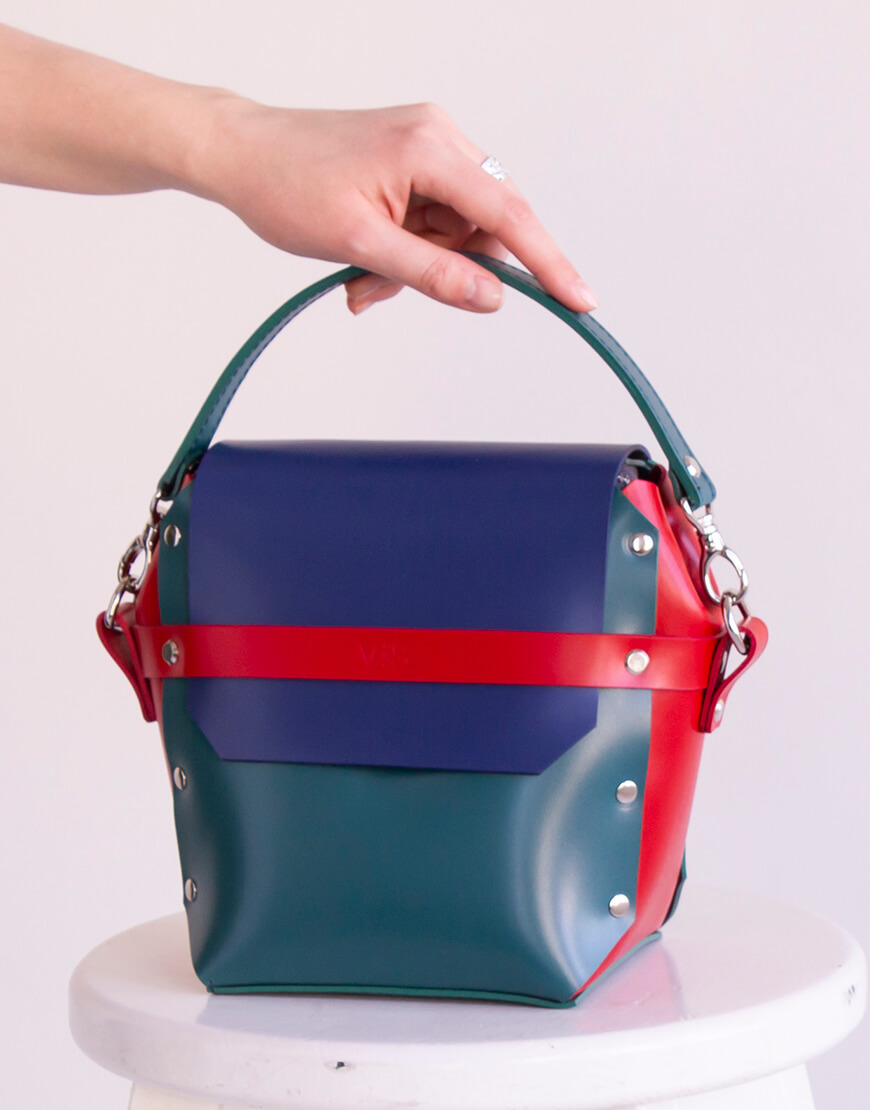 Середня, грайлива і з блискавкою. Не велика сумочка зі шкіри українського виробництва. Основне відділення закривається на кришку-клапан і блискавку. Всередині сумочки одне відділення і кишенька з повсті. Розмір дна 13*15 см. Висота 18 см. У комплекті є довга ручка.