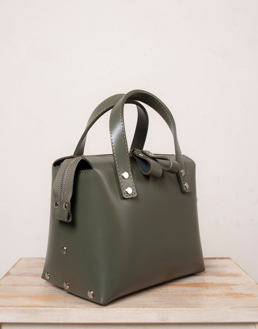 На перший погляд це маленька сумка. Але це зовсім не так. Вірніше все вірно зовні. Усередині вона вас здивує. У неї поміщається набагато більше. Чим це може здатися на перший погляд. Корпус виконаний зі шкіри українського виробництва. Основне відділення закривається на блискавку. Усередині сумочки одне відділення і кишеня з повсті. Розмір дна 19*12 см. Висота 18 см. У комплекті є довга ручка.
