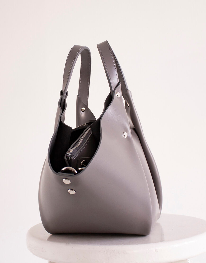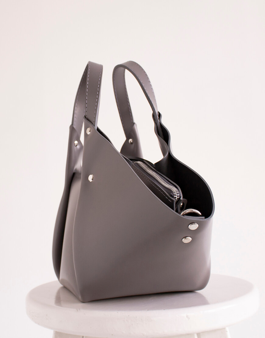 Містка “сумка-в-сумці”. Так, внутрішній вкладиш можна використовувати як другу сумку. На ньому є спеціальні кріплення для довгої ручки. Сумка виконана з натуральної шкіри українського виробництва. Усередині сумочки – вкладиш, також зі шкіри. Усередині вкладиша одне відділення і кишенька з повсті. У комплекті є довга ручка. Розмір корпусу 17*16 см. Висота 18 см. Ширина вгорі 45 см. Розмір вкладиша 15*15 см. Висота 17 см.