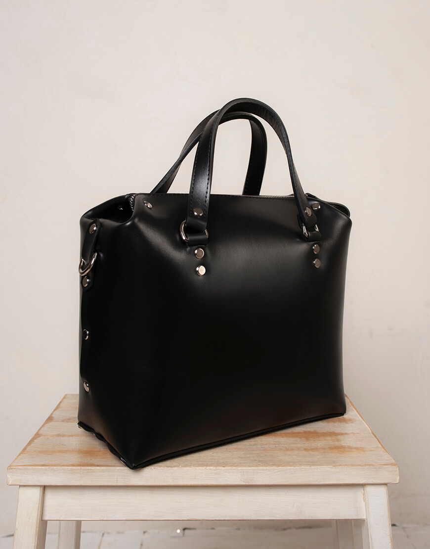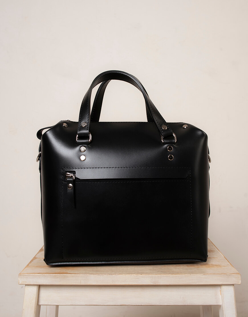 Це ідеальна сумка. По-перше, вона вміщує папку з документами. По-друге, ви можете все необхідне на роботу і на вечірній фітнес. По-третє, за будь-яких обставин вона триматиме форму. Корпус виконаний зі шкіри українського виробництва. Основне відділення закривається на блискавку. Усередині сумочки одне відділення та кишенька з повсті. Зовні корпус доповнено кишенею на блискавці, щоб швидко і зручно знаходити найнеобхідніше. Розмір дна 29*12 см. Висота 26 см. У комплекті є довга ручка.