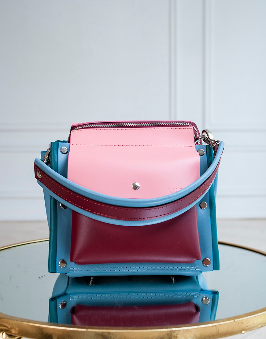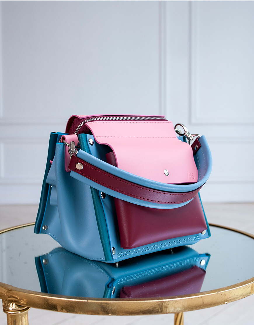 Її звуть Лютеція і в ній є щось італійське. Швидше за все, це сміливість поєднання кольорів, рішучість і особлива місткість. Корпус виконаний зі шкіри українського виробництва, зовні є кишеня на магніті. Основне відділення сумочки закривається на блискавку. Усередині сумочки – одне відділення і дві кишеньки з повсті. У комплекті є довга ручка. Розмір дна 21*19 см. Висота 21 см. У комплекті є довга ручка.