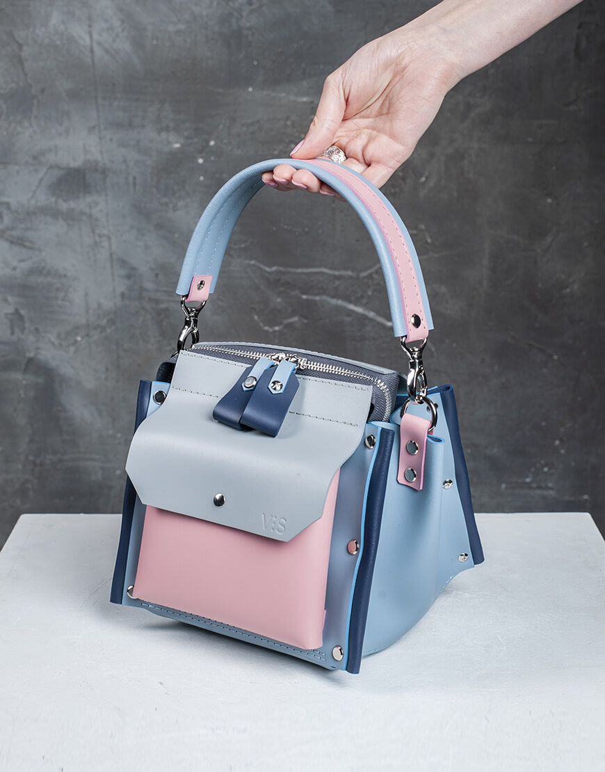 Її звуть Лютеція і в ній є щось італійське. Швидше за все, це сміливість поєднання кольорів, рішучість і особлива місткість. Корпус виконаний зі шкіри українського виробництва, зовні є кишеня на магніті. Основне відділення сумочки закривається на блискавку. Усередині сумочки – одне відділення і дві кишеньки з повсті. У комплекті є довга ручка. Розмір дна 21*19 см. Висота 21 см. У комплекті є довга ручка.