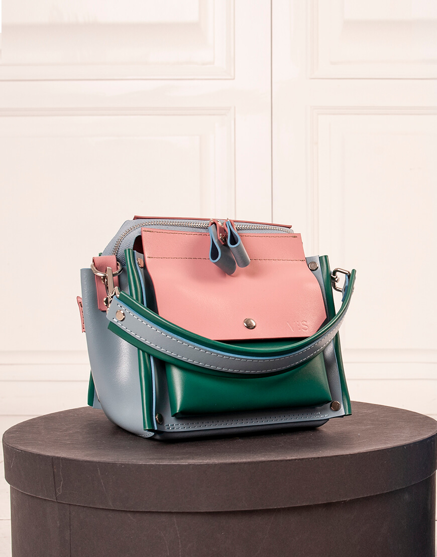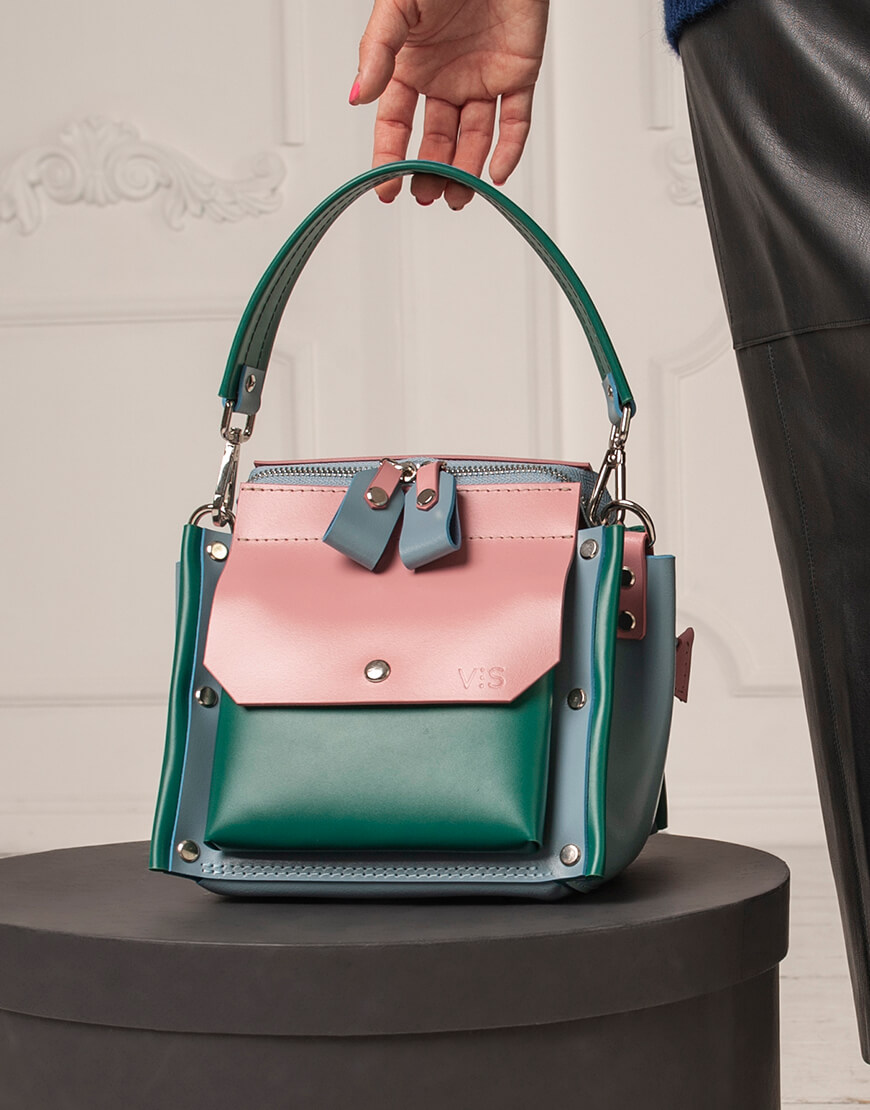 Її звуть Лютеція і в ній є щось італійське. Швидше за все, це сміливість поєднання кольорів, рішучість і особлива місткість. Корпус виконаний зі шкіри українського виробництва, зовні є кишеня на магніті. Основне відділення сумочки закривається на блискавку. Усередині сумочки – одне відділення і дві кишеньки з повсті. У комплекті є довга ручка. Розмір дна 21*19 см. Висота 21 см. У комплекті є довга ручка.