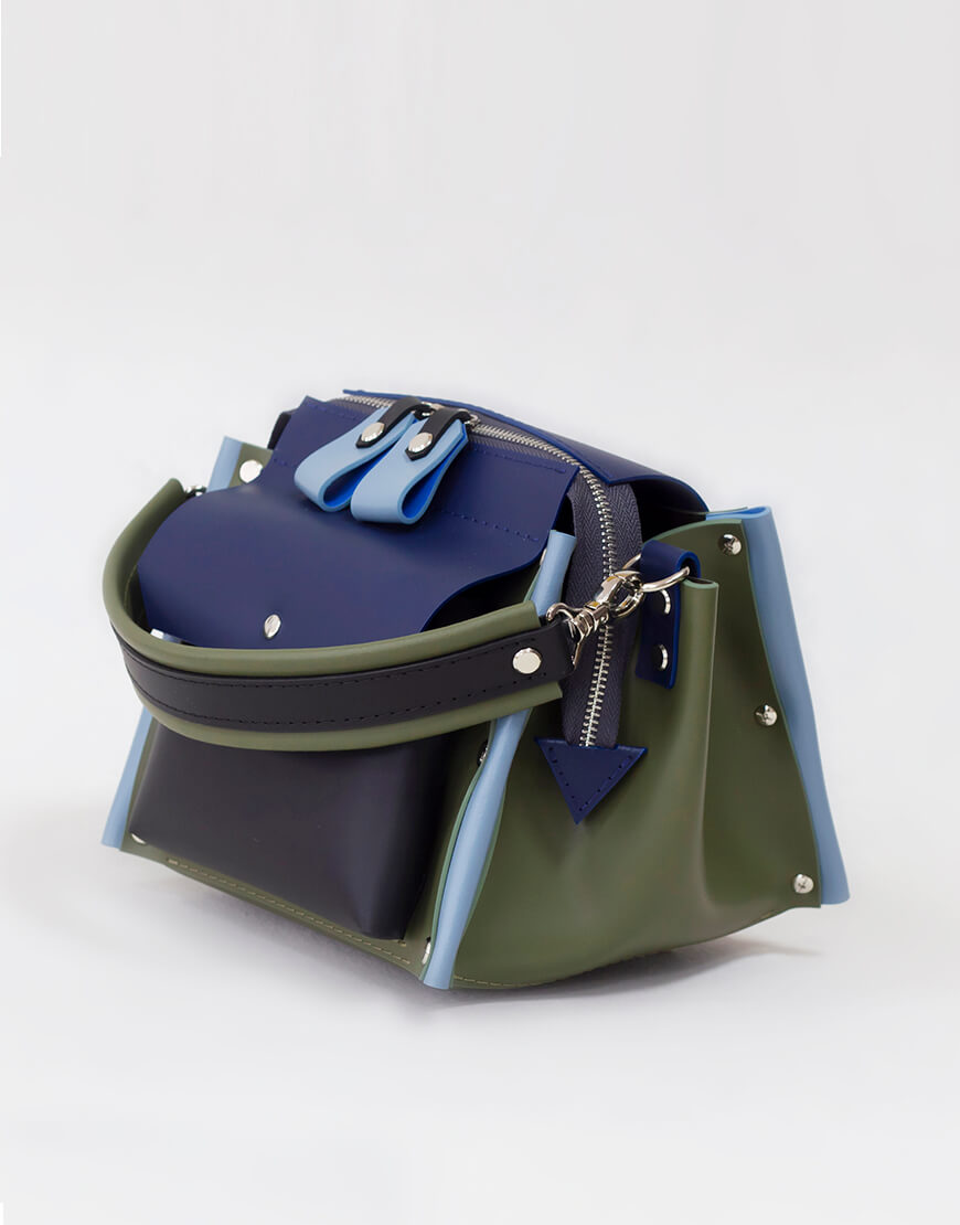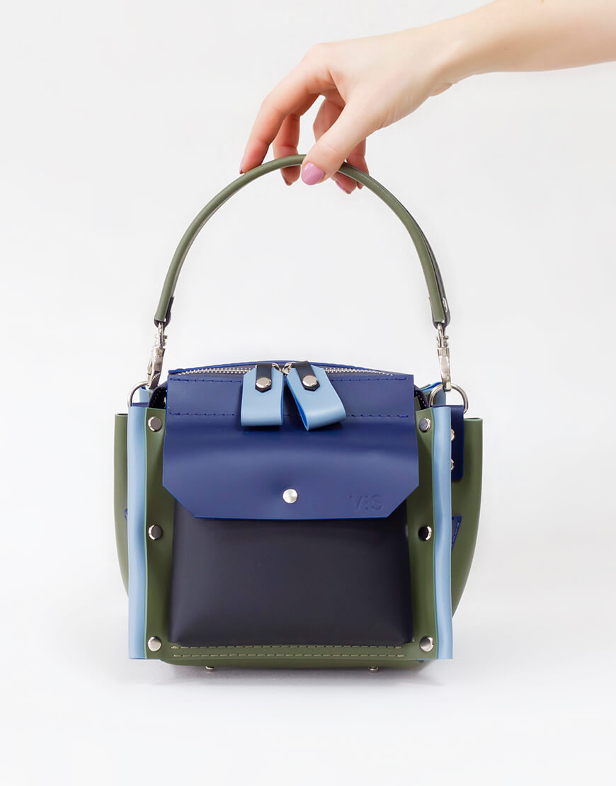 Її звуть Лютеція і в ній є щось італійське. Швидше за все, це сміливість поєднання кольорів, рішучість і особлива місткість. Корпус виконаний зі шкіри українського виробництва, зовні є кишеня на магніті. Основне відділення сумочки закривається на блискавку. Усередині сумочки – одне відділення і дві кишеньки з повсті. У комплекті є довга ручка. Розмір дна 21*19 см. Висота 21 см. У комплекті є довга ручка.