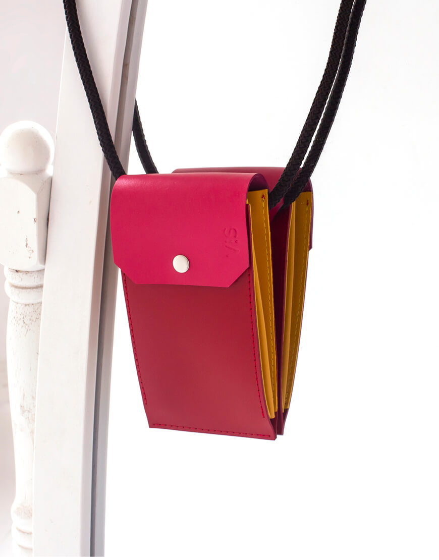 Це найзручніша сумка для телефона. Ви можете використовувати її, як основну сумку. Або як другу сумку, для носіння з рюкзаком. Ваш телефон, картки, ключі завжди будуть під рукою. Корпус виконаний зі шкіри українського виробництва. Усередині сумочки два відділення (для телефону і павербанка або для телефону і гаманця, ключів). За допомогою шнура-ручки ви можете зручно носити сумочку на талії або crossbody. Розмір 18*9 см. Ширина приблизно 3 см і може збільшуватися.