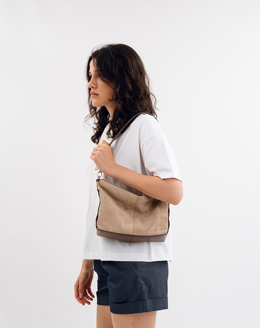 Доставка впродовж 5-7 робочих днівСередня сумка крос-боді в актуальній формі, що поєднує шкіру та замшу — виглядає стильно, відчувається розкішно. Вона має дві ручки: коротку для носіння в руці та довшу для плеча. Усередині — підклад із натуральної бавовни, який додає м’якості й приємної текстури. Закривається на блискавку, тримає форму й легко доповнює будь-який образ. Лаконічна, з характером — саме та сумка, з якою хочеться бути щодня.