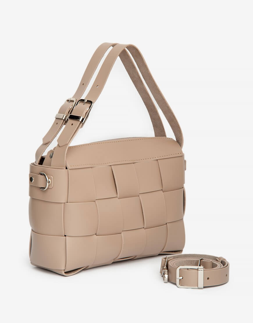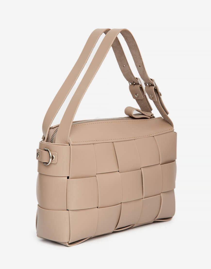 Доставка впродовж 5-7 робочих днівПарасоля та томик на 700 сторінок. Ми перевіряли. Це все вміщує у себе модель Елара. Елегантна ззовні та дуже чимала всередині. А ще вона плетена. Так, абсолютно та безкомпромісно плетена вручну сумочка. Всередині одне основне відділення, яке закривається на блискавку. Ззовні сумочку доповнено короткими ручками, що мають регулювання.