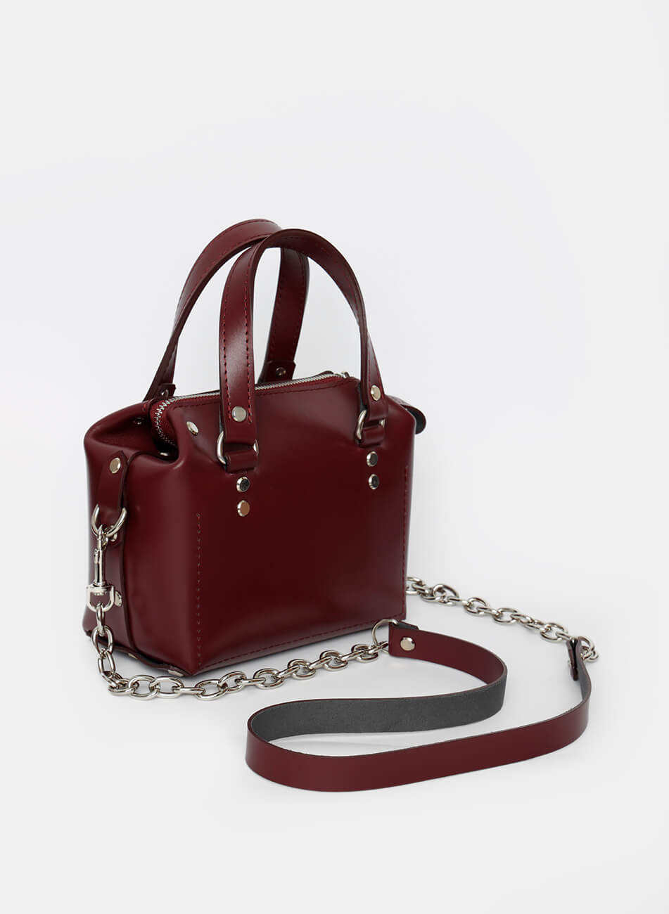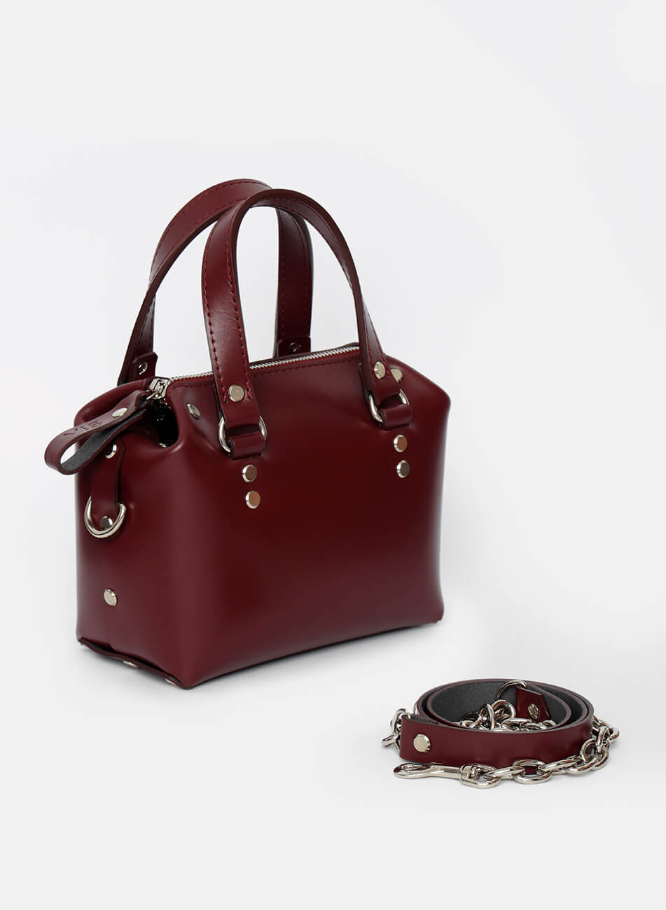 Маленька сумочка, яку не захочеться випускати з рук. Завдяки особливим формам вона здивує вас своєю місткістю. Корпус виконаний зі шкіри українського виробництва. Основне відділення закривається на блискавку. Усередині сумочки одне відділення і кишеня з повсті. У комплекті є довга ручка.