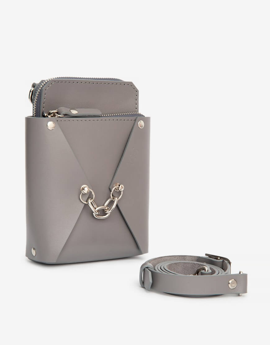 Модель Талія є абсолютним бестселлером за кількістю подарованих. Створена, як варіація сумки для телефону. Залежно від розміру, його можна зручно розміщувати у зовнішній кишені чи в основному відділенні. Сумка виготовлена зі шкіри українського виробництва. Основне відділення закривається на блискавку. Ззовні корпусу є кишеня на блискавці. А у комплекті є довга ручка, довжина якої регулюється.