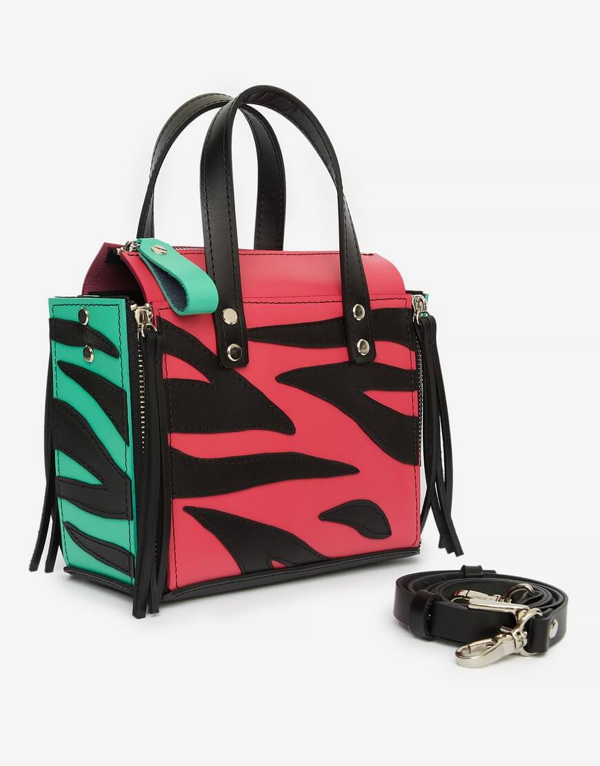 Таких дуже мало у світі. Новий дизайн і надзвичайно лімітована кількість. Маленька, грайлива та дуже унікальна. Кожна сторона моделі Тарунна має свою особливу аплікацію. Тому, яку саме частину робити лицьовою – справа смаку. Основне відділення закривається на блискавку. Всередині сумочки підклад з фетру, одне відділення та дві кишені з фетру.