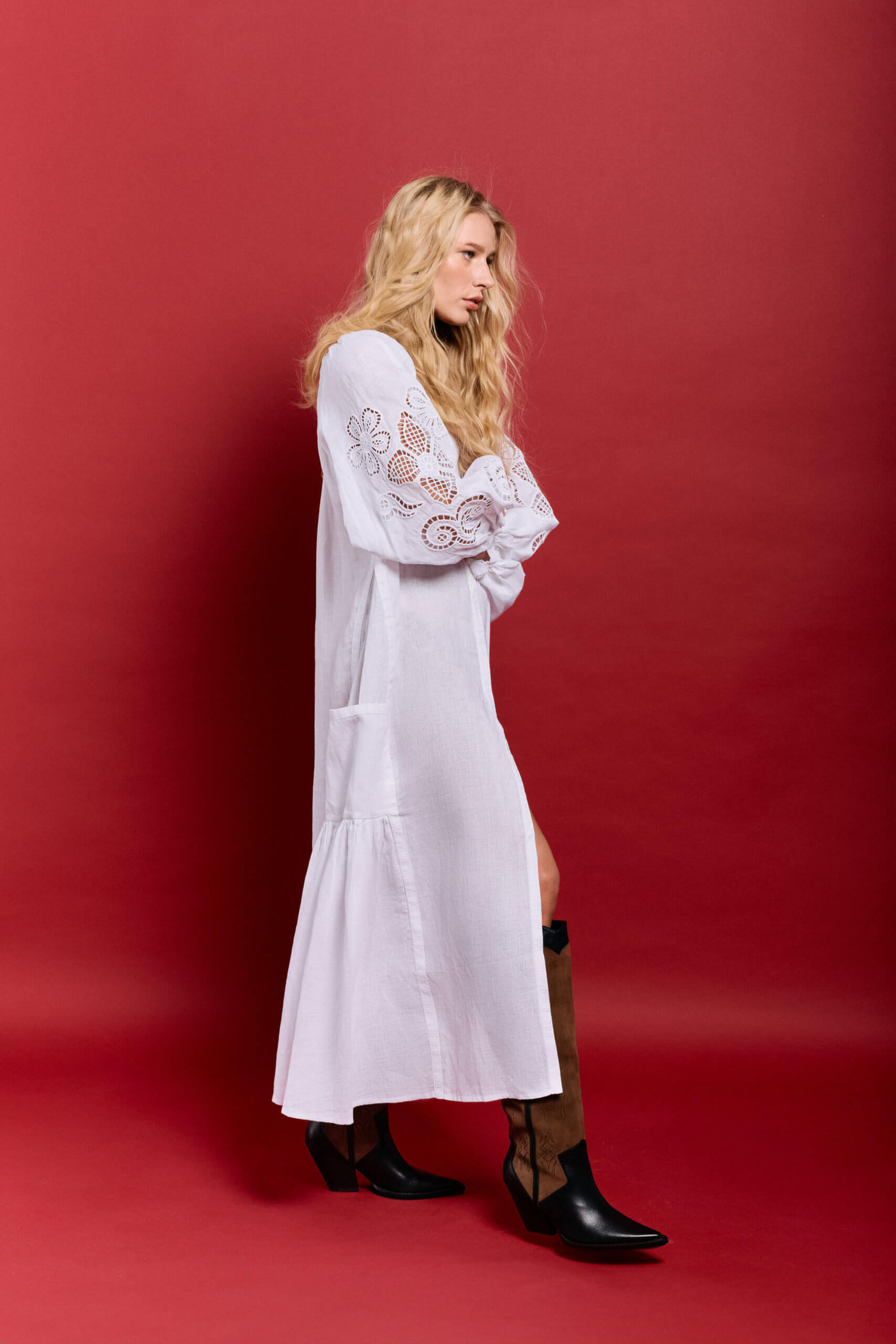 Доставка впродовж 5-7 робочих днівCукня з ажурною вишивкою, в якій елементи візерунка обшиваються гладдю, а проміжки між ними вирізаються, створюючи мереживо.