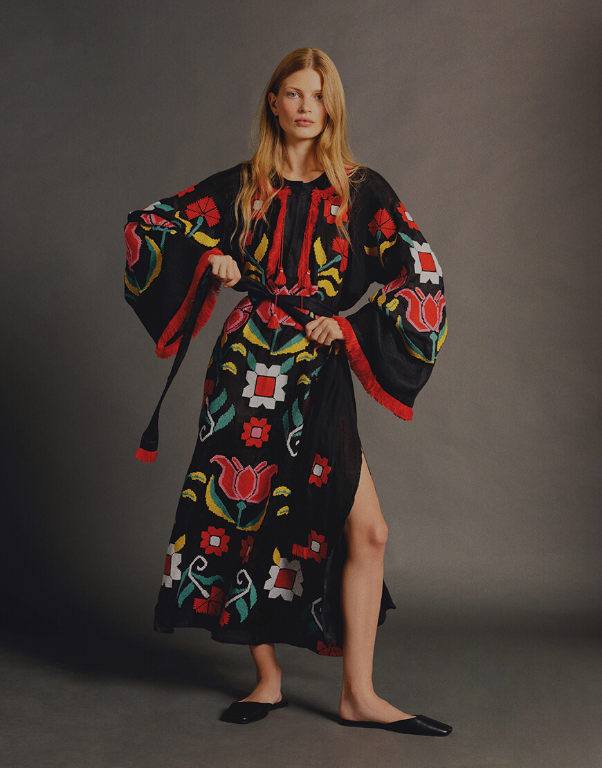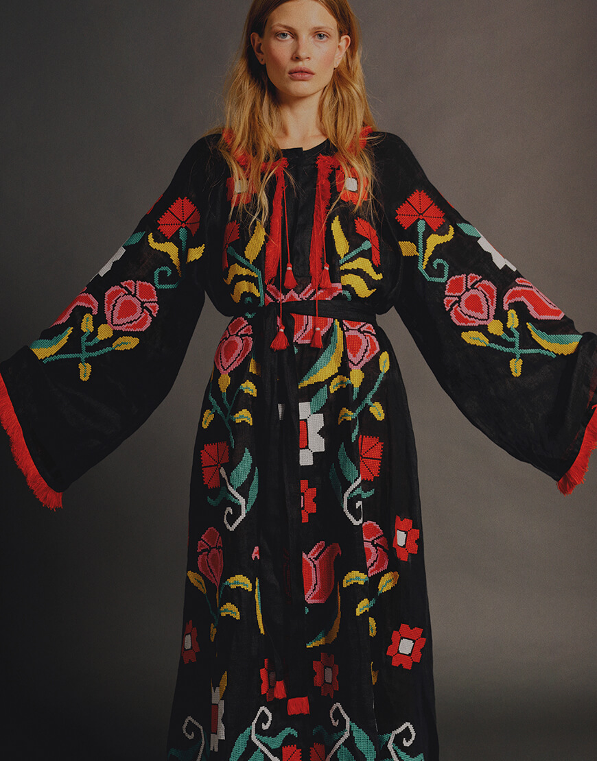 Доставка впродовж 5-7 робочих днівРута — традиційна вишивка хрестиком, з квітковим орнаментом. Має ширші рукави до низу з випущеними нитками, оригінальний комір та пояс з китицями.