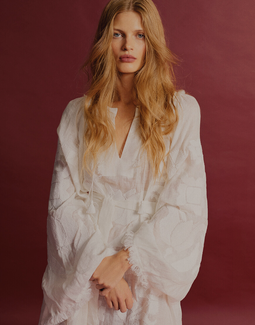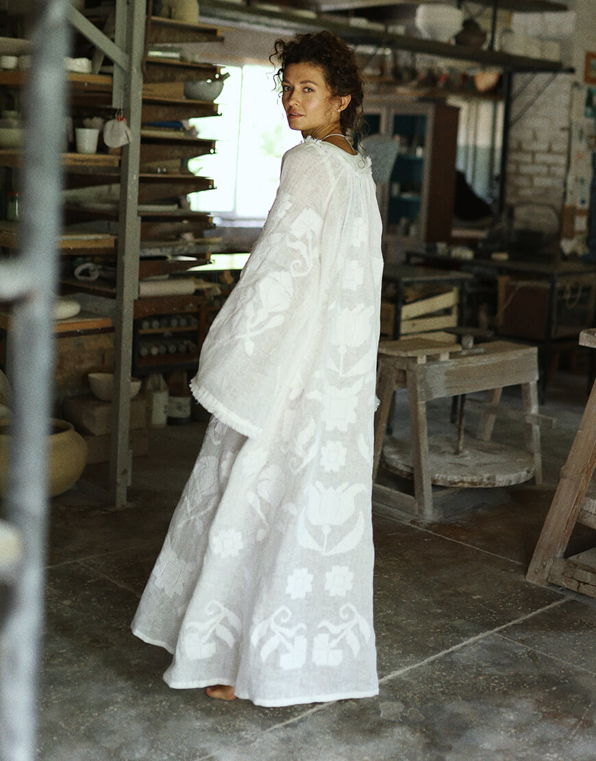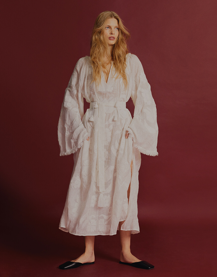 Доставка впродовж 5-7 робочих днівРута — традиційна вишивка хрестиком, з квітковим орнаментом. Має ширші рукави до низу з випущеними нитками, оригінальний комір та пояс з китицями.