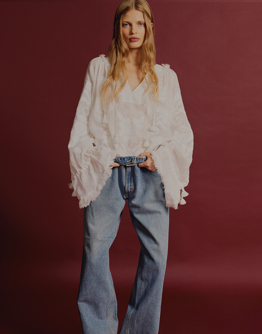 Доставка впродовж 5-7 робочих днівРута — традиційна вишивка хрестиком, з квітковим орнаментом. Має ширші рукави до низу з випущеними нитками, оригінальний комір та пояс з китицями.