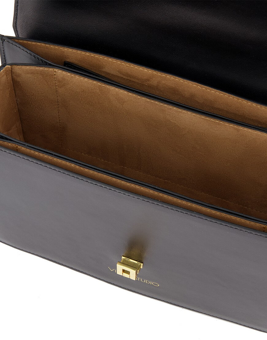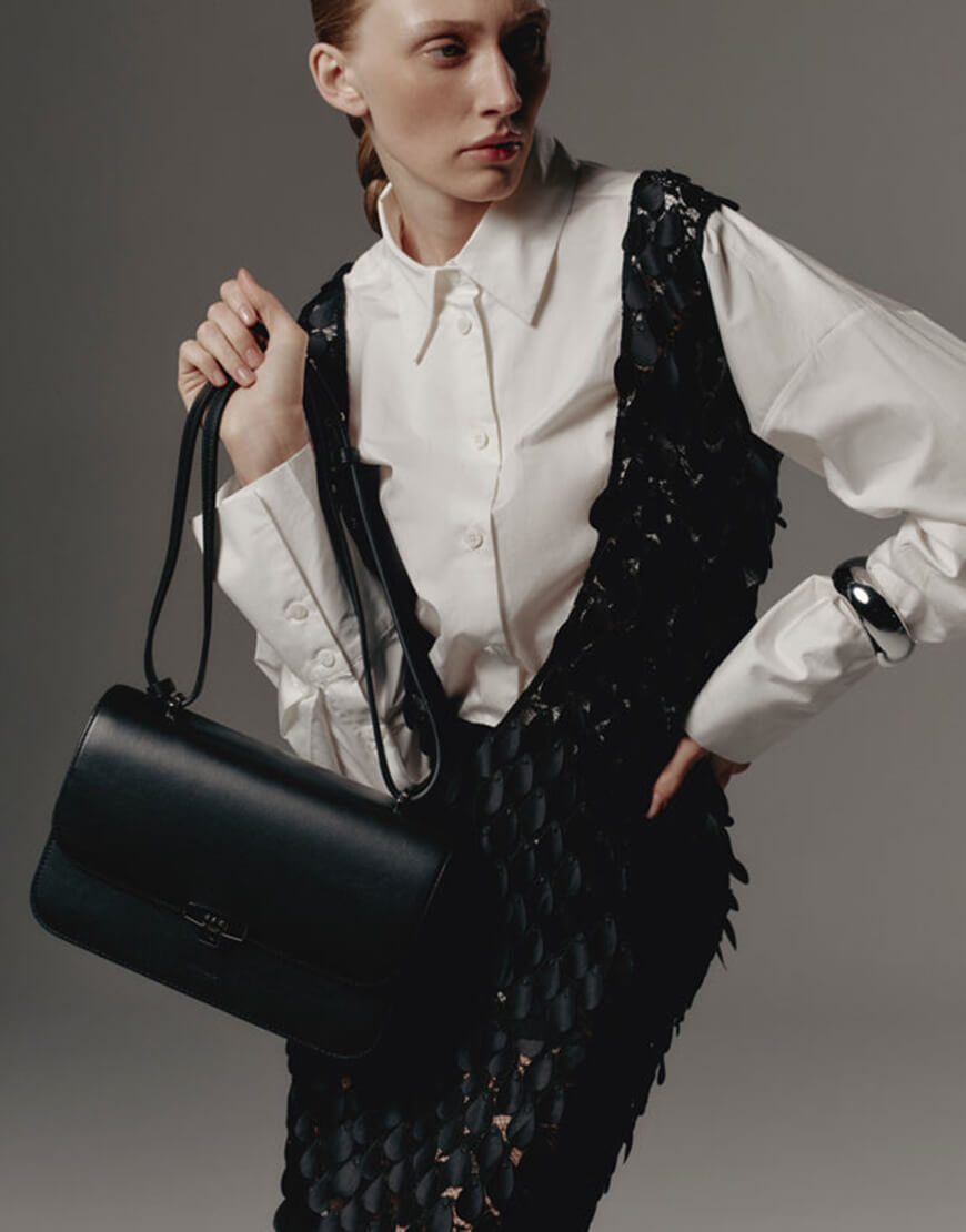 Невелика сумка SOFIE – універсальна модель, що підтримає casual-образ будь-якої складності. Тонкий пасок регулюється за довжиною та функціонально має два положення – довге та коротке. Сумка вироблена із щільної шкіри, ретельно відполірованої до ідеальної гладкості та глянсового блиску. Для зручної організації простору всередині дизайнери марки передбачили три кишені та слот для карток. Сумка закривається широким відкидним клапаном із поворотним замком. Підкладка – натуральна шкіра (велюр).