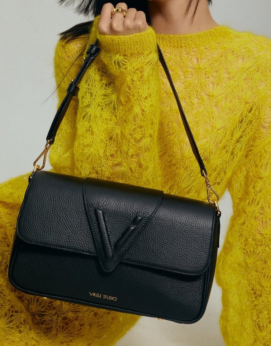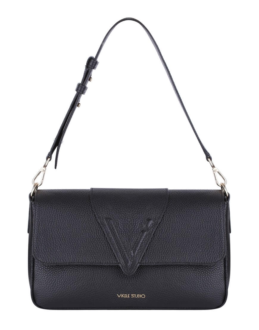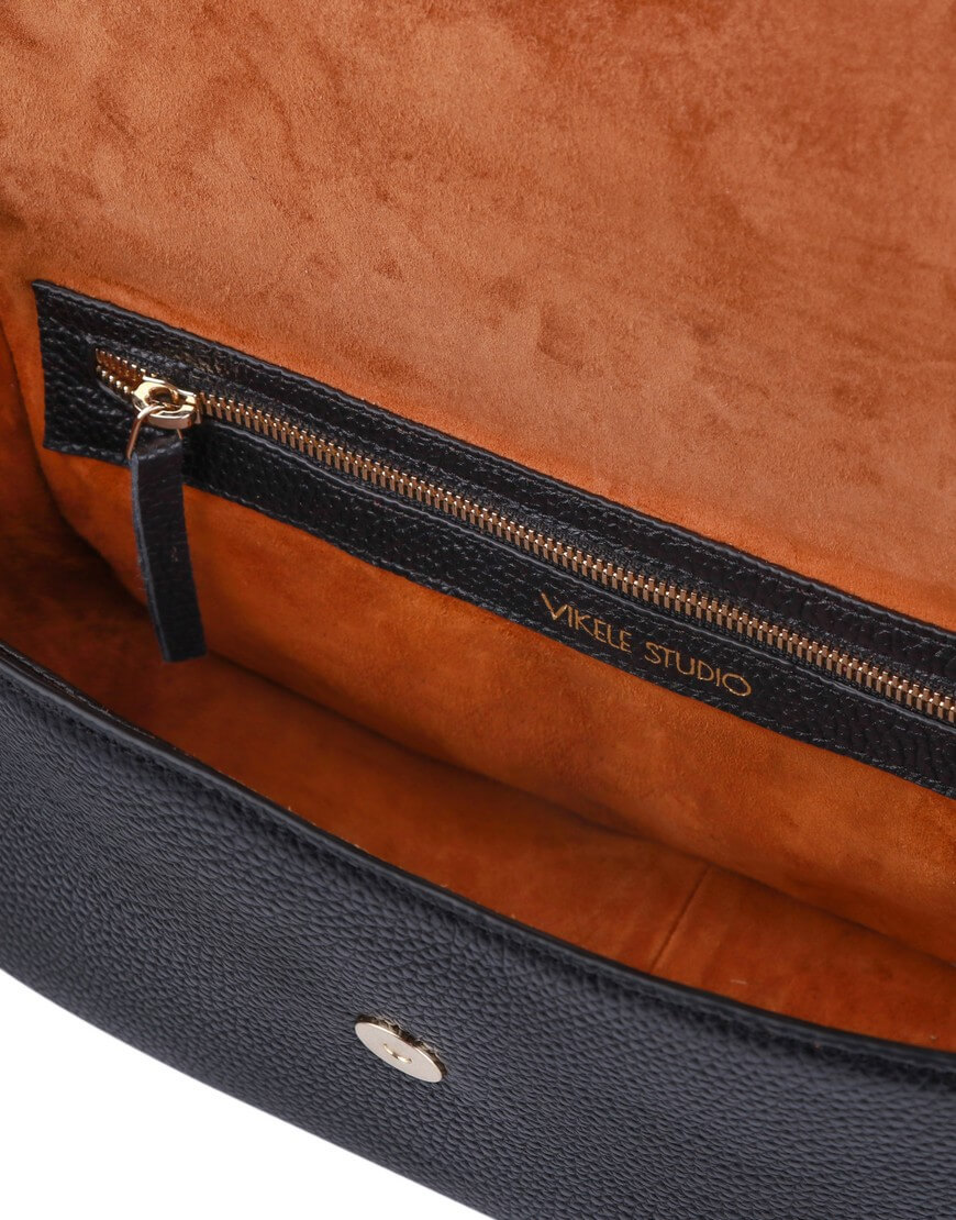 Сумка Name – це бездоганність у кожній зі 100 деталей цієї моделі. Велика тиснена емблема на клапані з магнітною кнопкою говорить про приналежність до бренду VIKELE STUDIO. Для пошиття цього виробу з однією регульованою ручкою майстри бренду використали м’яку зернисту шкіру. Сумка має 3 кишені: одна – з зовнішнього боку (застібається на магнітну кнопку), дві – всередині сумки (відкрита та маленька на блискавці). Чотири маленькі ніжки на дні врятують низ улюбленої сумки від стирання та забруднення. Підкладка – натуральна шкіра (велюр).