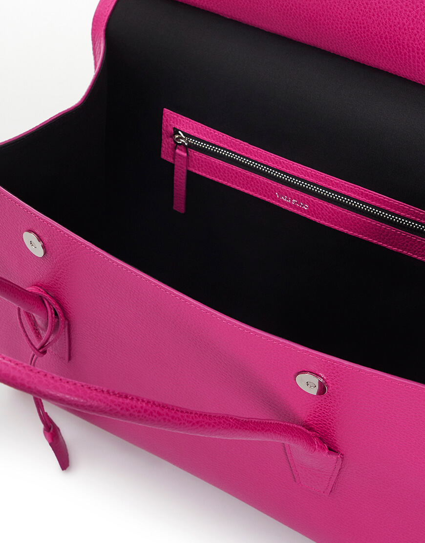 Ергономічна форма, зручна довжина ручок, наявність двох кишень для дрібниць і що найголовніше – місткість. Сумка GRACIA може вмістити, як жіночі дрібнички, так і важливі документи. До того ж, в залежності від положення “вушок” змінює свою форму та стилістику, зі стриманої серйозної прямокутної на м’яку романтичну трапецію. Сумка надійно закривається широким клапаном з двома магнітними кнопками, всередині – натуральна бавовняна підкладка. Модель доповнили широким знімним плечовим паском, що кріпиться діагонально з зовнішнього боку сумки. Чотири маленькі ніжки на дні врятують низ сумки від стирання та забруднення.