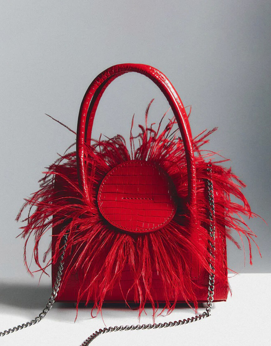 Доставка протягом 3-5 робочих днівМіні сумка Gracia Mini – це сумочка для найчарівніших жінок та подій, створена з червоної шкіри з ефектом кроко та із прикрасою з пір’я страуса, що знімається.