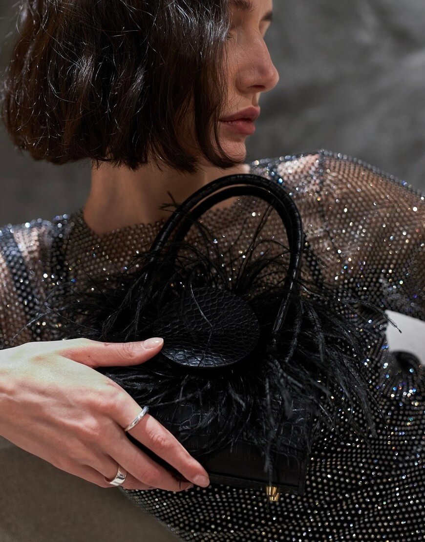 GRACIA MINI зі страусовим пір’ям може стати головним спецефектом вашого луку. А якщо ви втомитесь сяяти, одним рухом знімить накладку із пір’ям і сміливо «вливайтеся» в трендові мережі дівчат і жінок з аксесуаром, що стане єдиним цілим у багатьох жіночих образах. Модель доповнена довгою ручкою-ланцюжком, що знімається, тому аксесуар зручно носити і в руці, і на плечі. Чотири маленькі ніжки на дні врятують низ улюбленої сумки від стирання та забруднення. Сумка виготовлена з матової шкіри чорного кольору з тисненням під крокодила, підкладка – натуральна шкіра (велюр). Всередині моделі є невеличка кишеня.