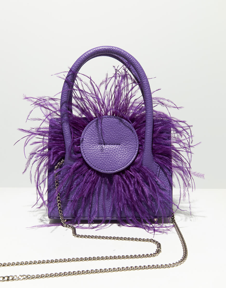 Доставка протягом 3-5 робочих днівМіні сумка Gracia Mini – це сумочка для найчарівніших жінок та подій, створена з фіолетової шкіри флотар та прикрасою з пір’я страуса, що знімається.