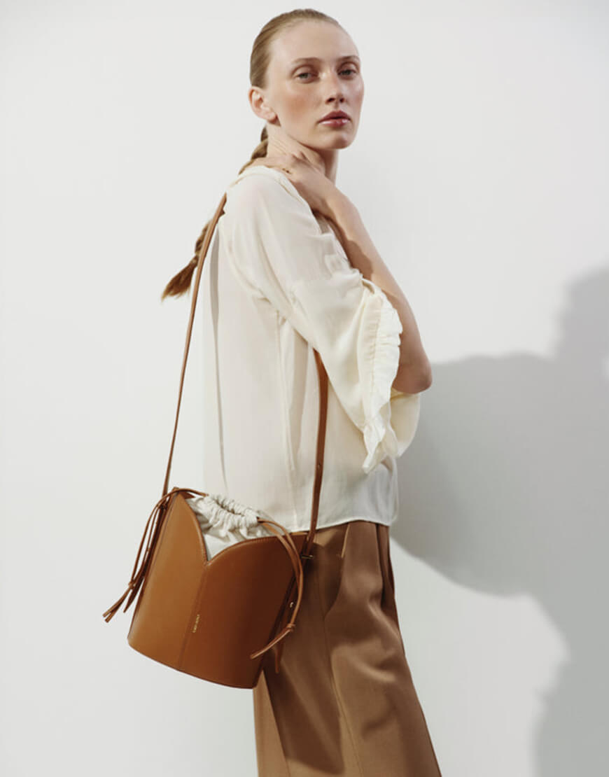 Сумка-відро від Vikele Studio з фірмовими елегантними вирізами та елегантною формою – про свободу самопрояву і цікавість до життя її власниці.