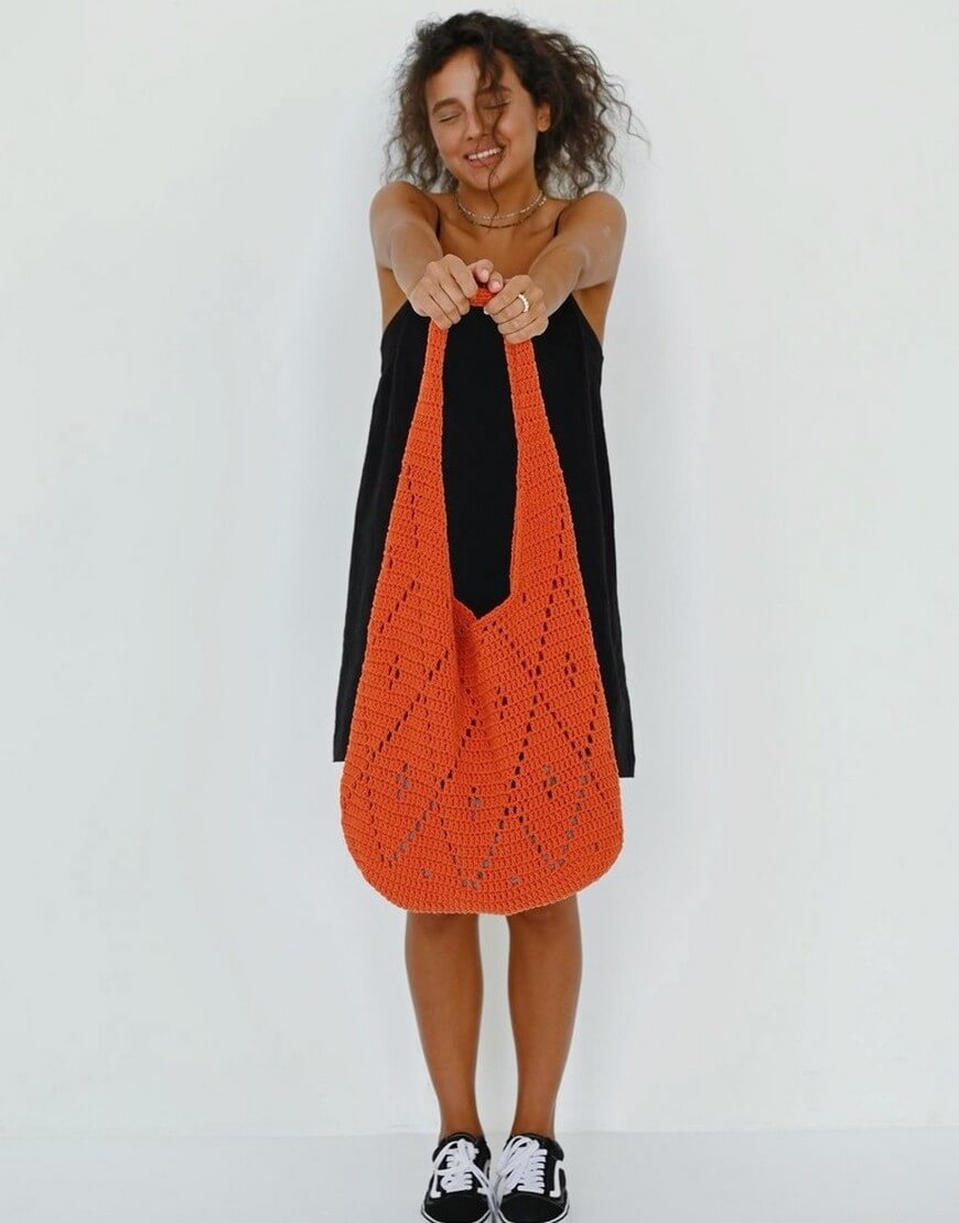 Шопер зі 100% бавовни виконаний у кольорі сицилійського апельсину. Ця модель дуже містка та комфортна.