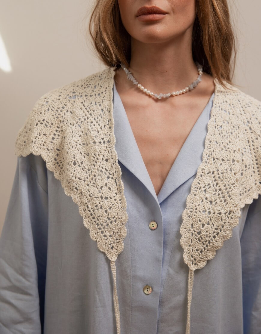 Рекомендуємо поєднувати кольє з перстнем з таких самих матеріалів, лляними сорочками, бавовняними топом та лонгслівом, светрами Touch і Cloud.