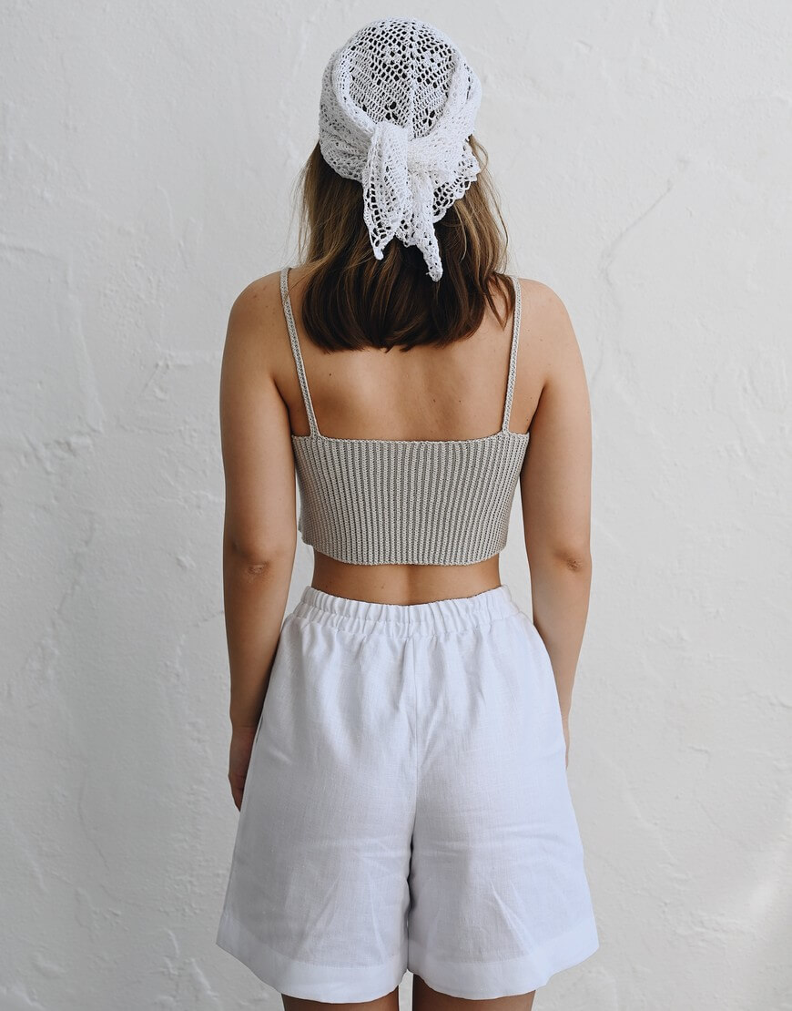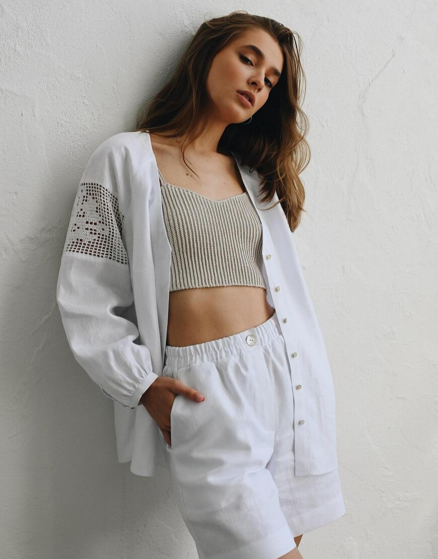 Рекомендуємо поєднувати топ з шортами з конопляної тканини та зі штанами з льону та віскози.