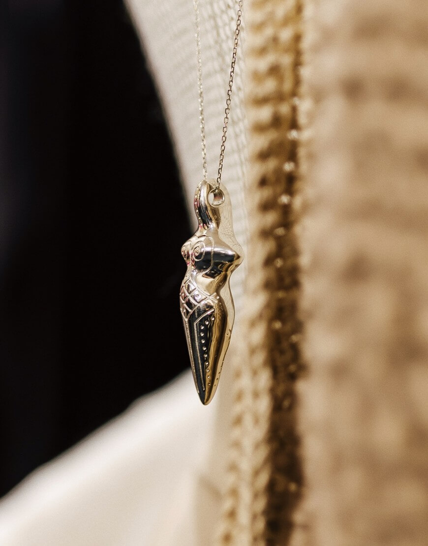 Ми створили свою версію Берегині, як твій особистий оберіг. Кулон BEREHYNIA представлений в двох інтерпритаціях: в сріблі та сріблі покритому позолотою. Всередині Берегині 9 металевих кульок, що символізують початок життя та магічну силу жінки
