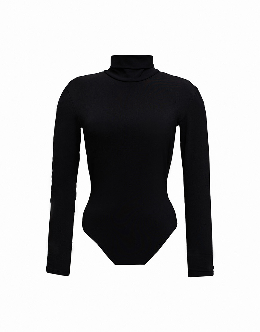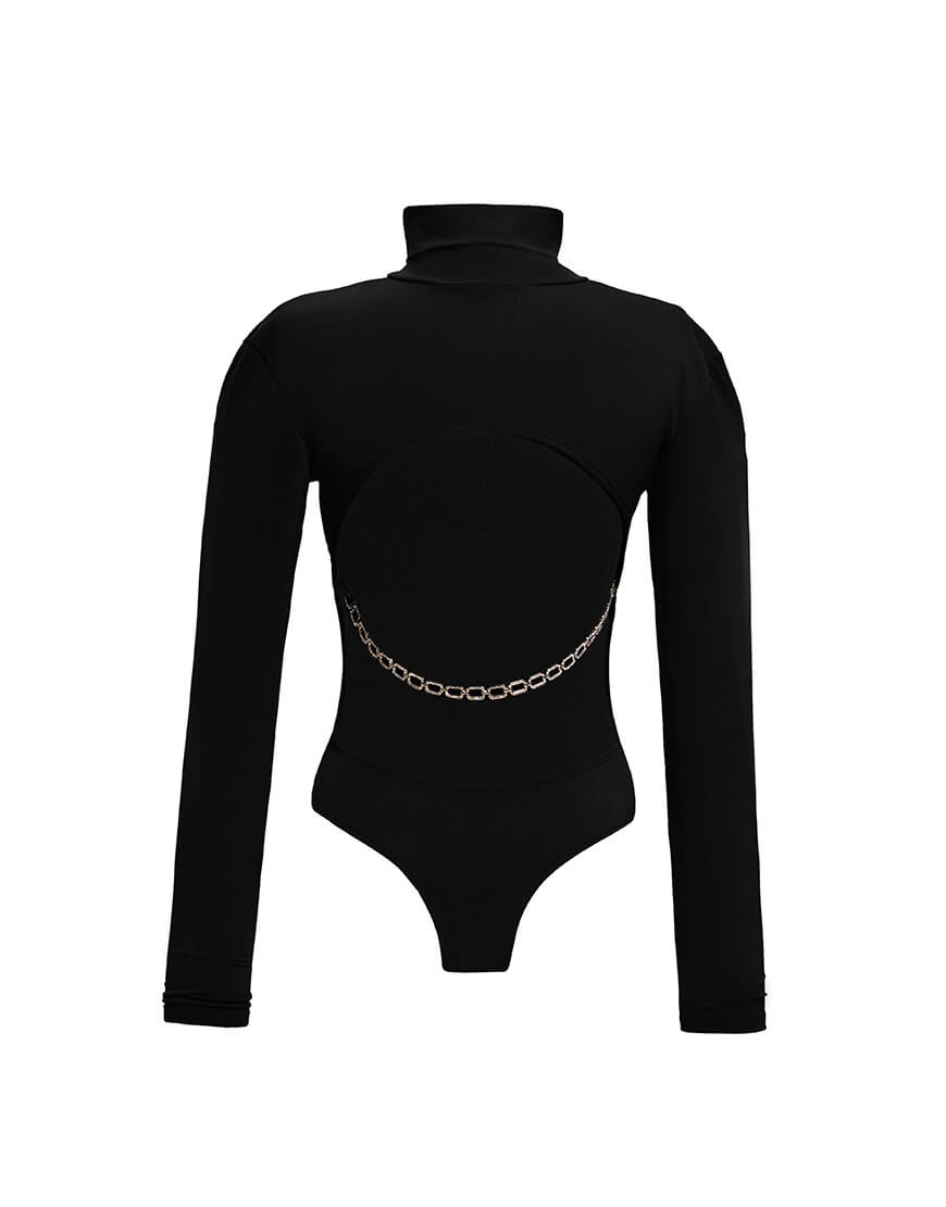 Облягаюче еластичне боді з округлим вирізом і зйомним металевим ланцюжком на спині.