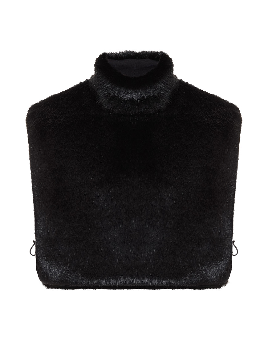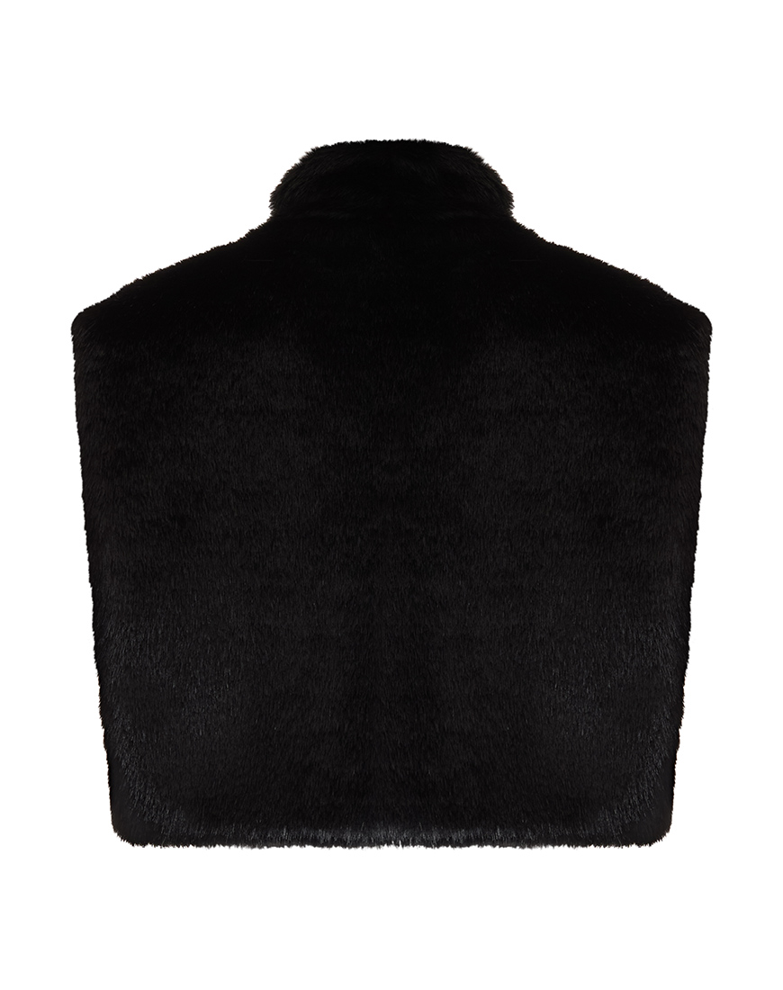 Доставка впродовж 2-9 робочих днівУкорочений жилет з м’якого штучного хутра глибокого чорного кольору з високою горловиною, який щільно облягає шию та груди. Ідеальний шар для багатошарових зимових образів.
