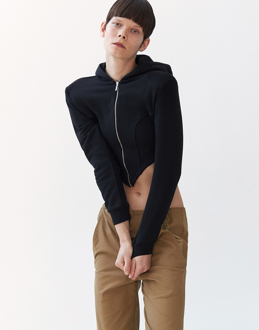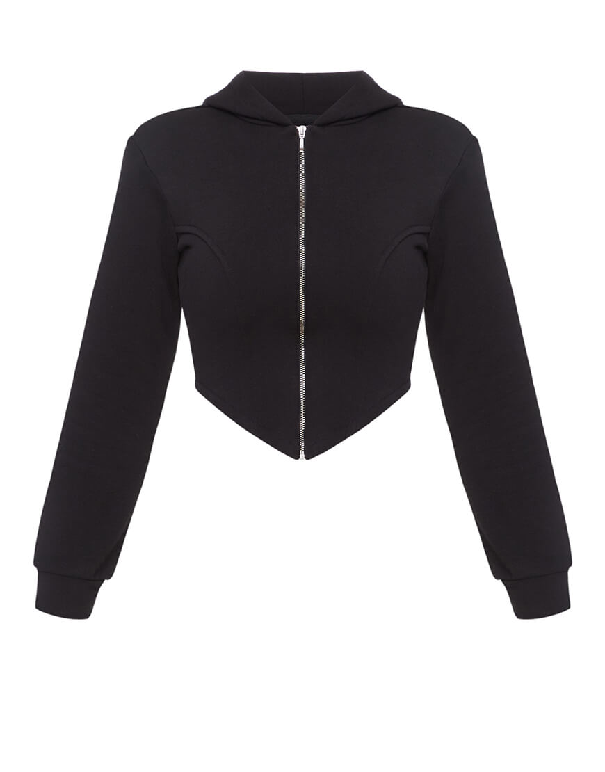 Худі коротке на молнії, яке завужчене ближче до низу за допомогою виточення