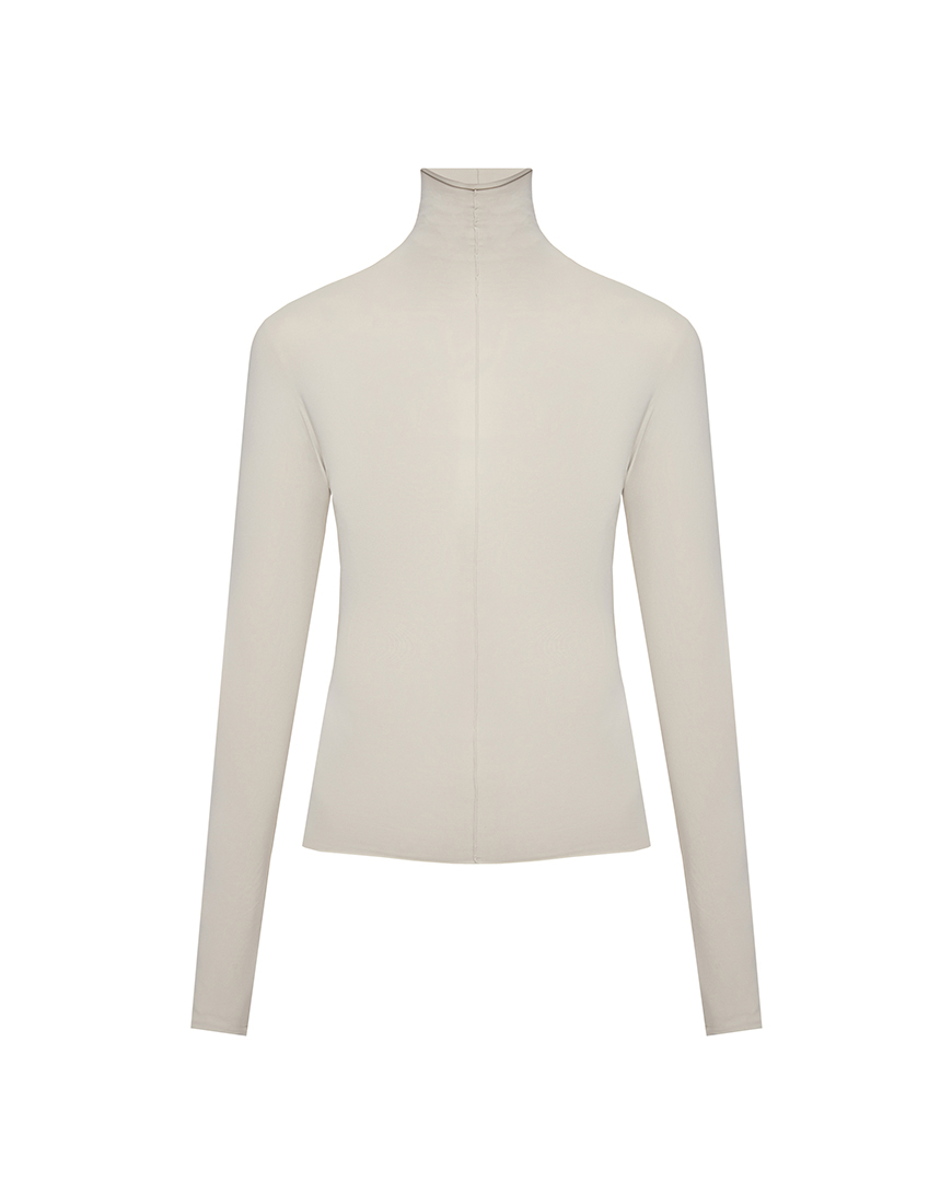Доставка впродовж 2-9 робочих днівЛаконічний гольф із легкої трикотажної тканини з довгими рукавами та високою горловиною. Центральний шов спереду додає мінімалістичному силуету графічності й підкреслює вертикаль фігури.