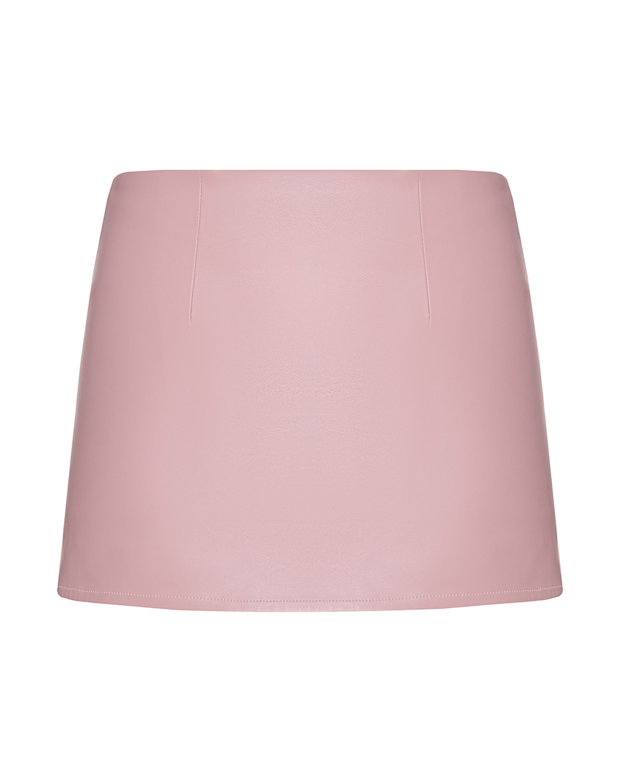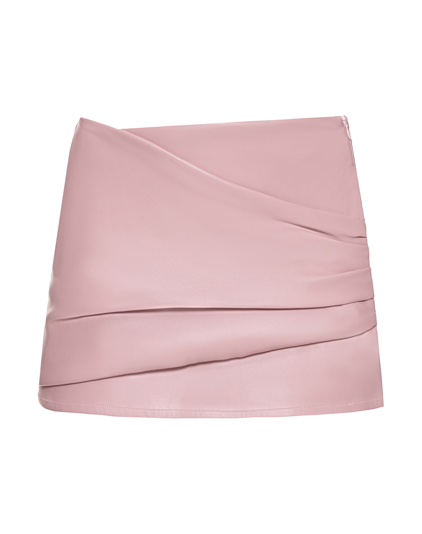 Доставка впродовж 2-9 робочих днівМініспідниця з екошкіри ніжно-рожевого кольору зі струмливими драпіровками спереду. Лаконічний силует підкреслює лінію стегон, а м’які складки додають руху та роблять образ більш чуттєвим. Ідеально поєднується з топом із того ж матеріалу або базними трикотажними виробами для вечірніх виходів і сміливих денних луків.