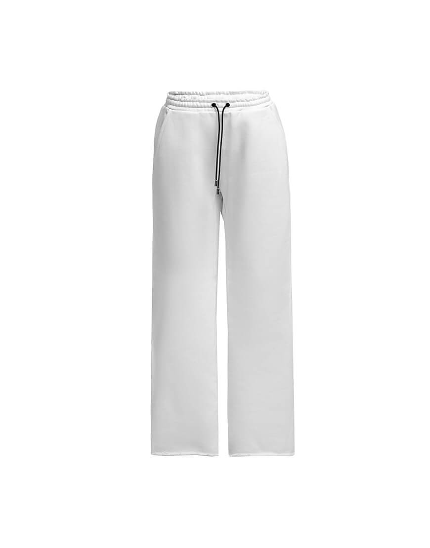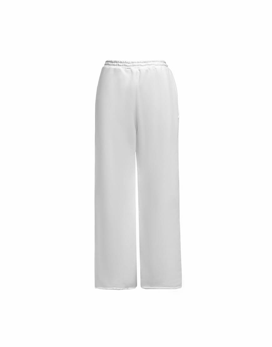 Прямі широкі брюки з необробленими краєм тканини внизу, дві бокові кишені, пояс з вбудованою куліскою.