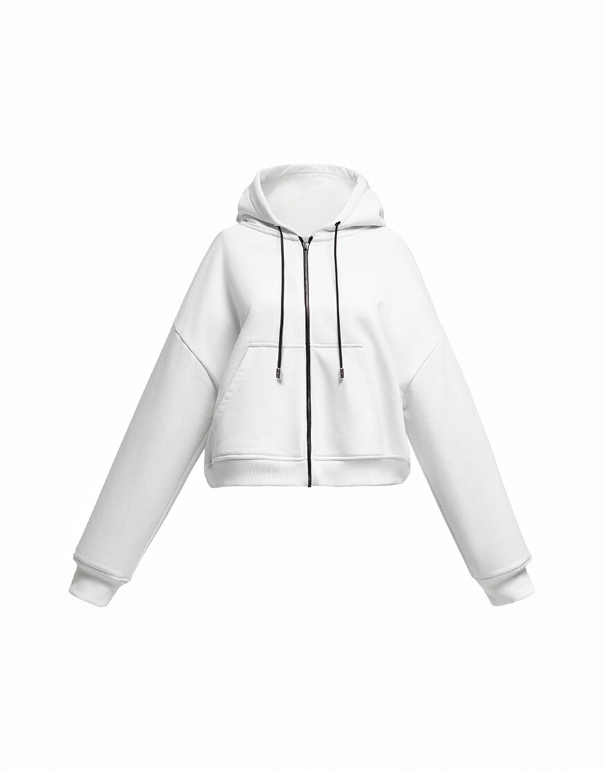 Худі із застібкою на блискавці і двосторонньою кишенею спереду, об’ємний капюшон з вбудованою куліскою по контуру.