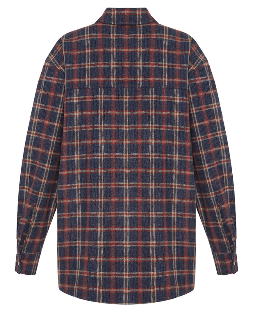 Сорочка фланелева оверсайз крою в крупну клітку; По центру розміщено дві кишені;
