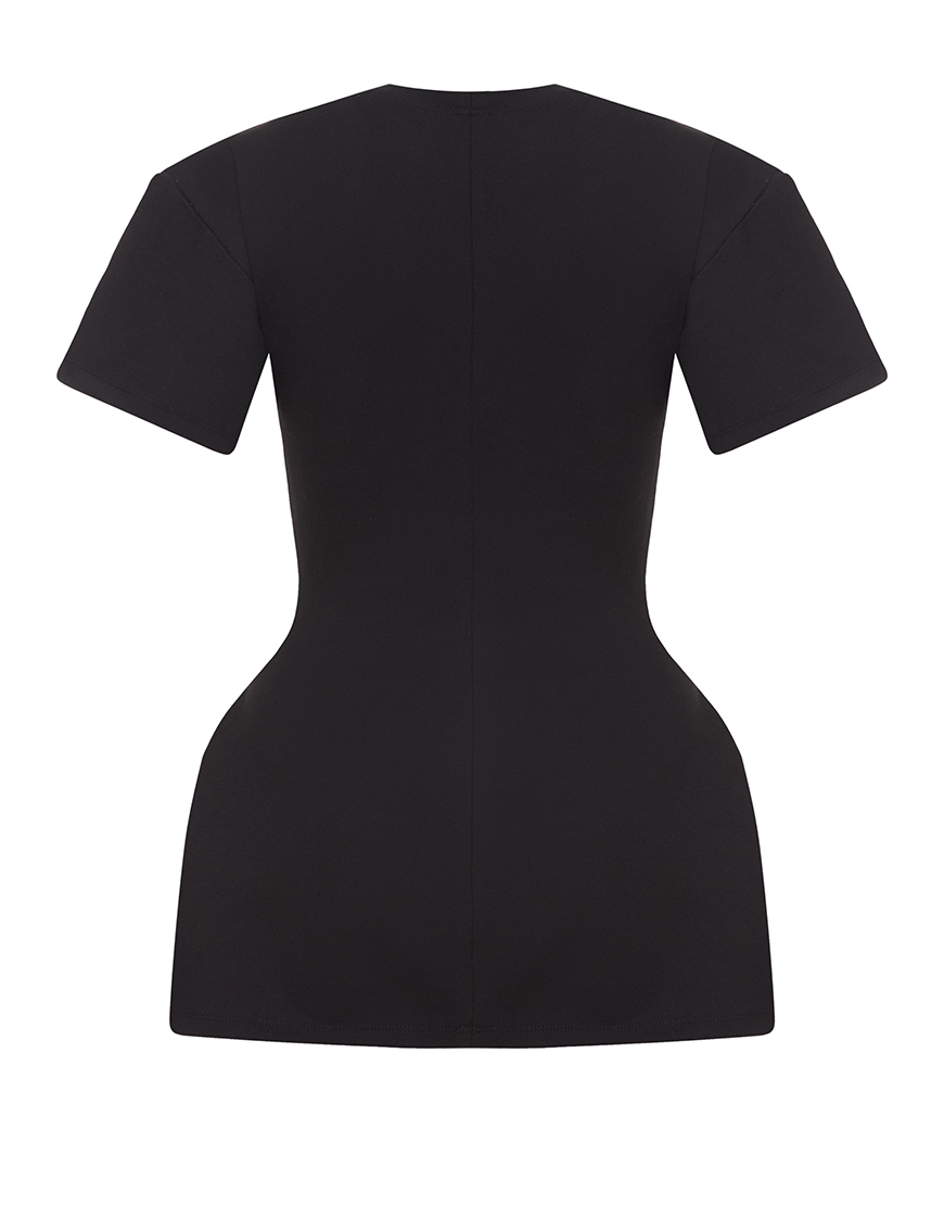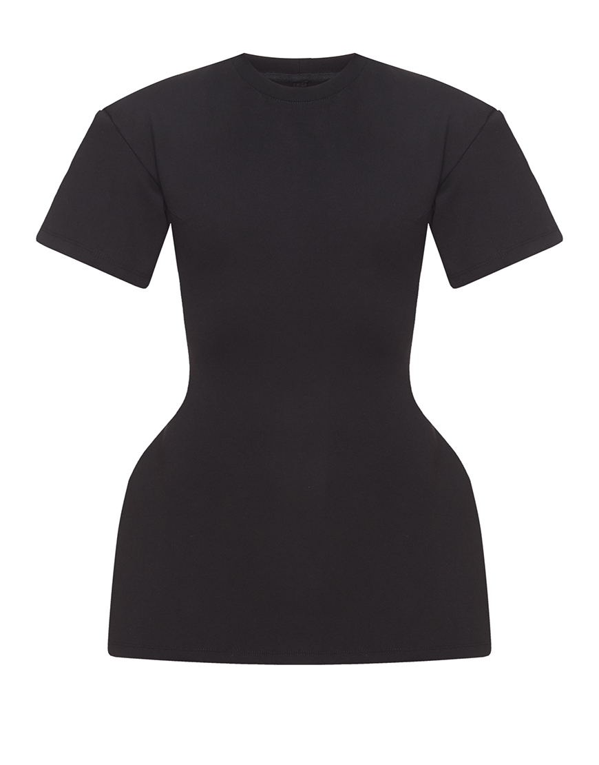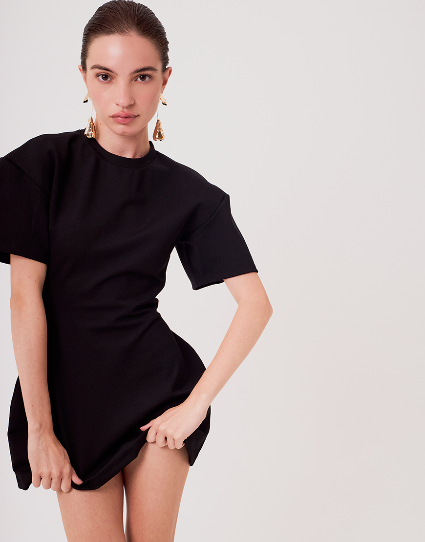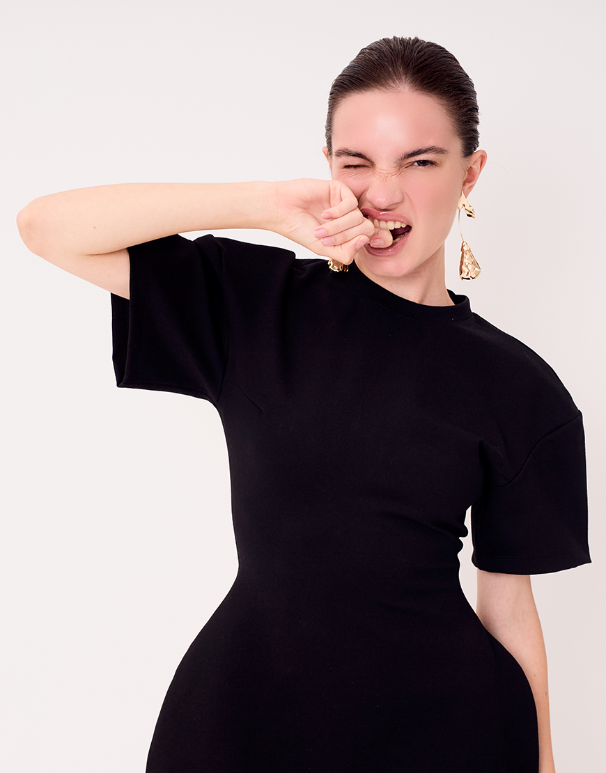 Не просто базова. Ця сукня – гра на контрастах: м’яка тканина й чітка лінія плечей, мінімалізм форми й ефектний силует.