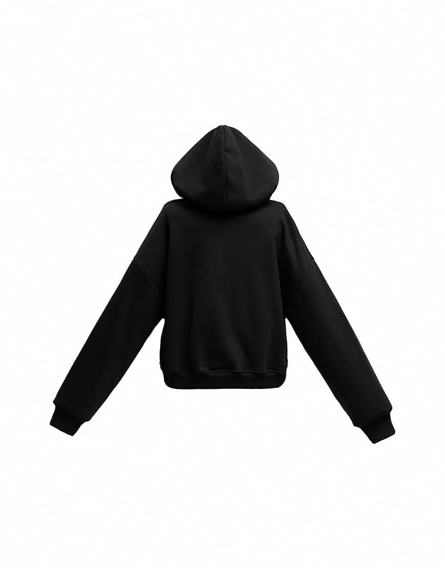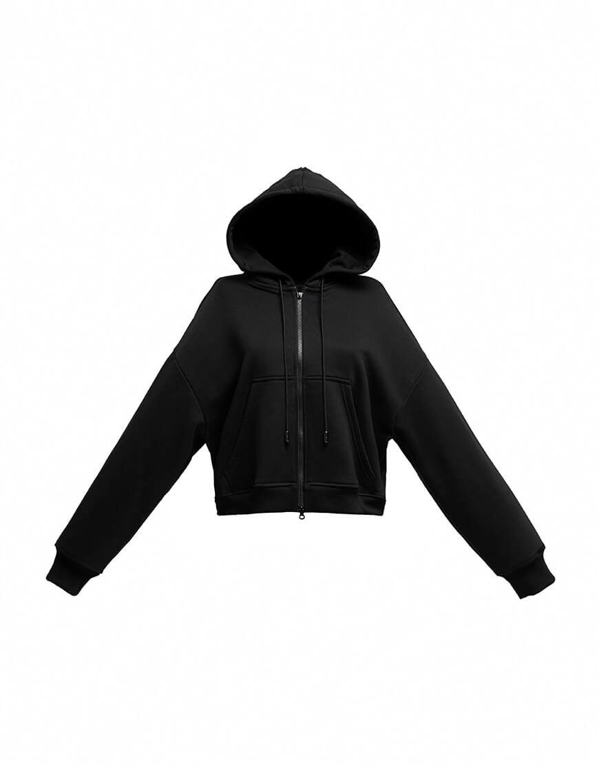 Худі із застібкою на блискавці і двосторонньою кишенею спереду, об’ємний капюшон з вбудованою куліскою по контуру.
