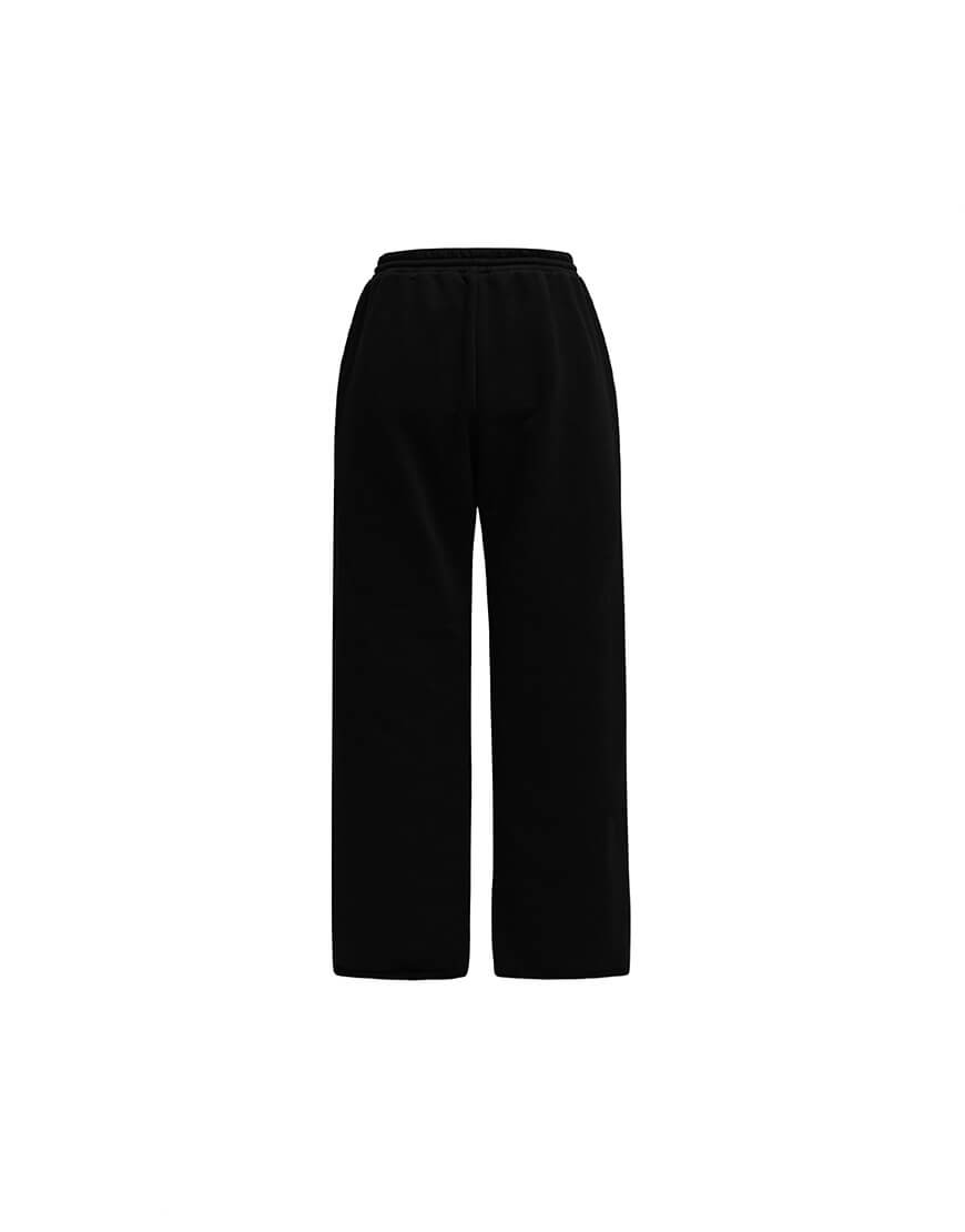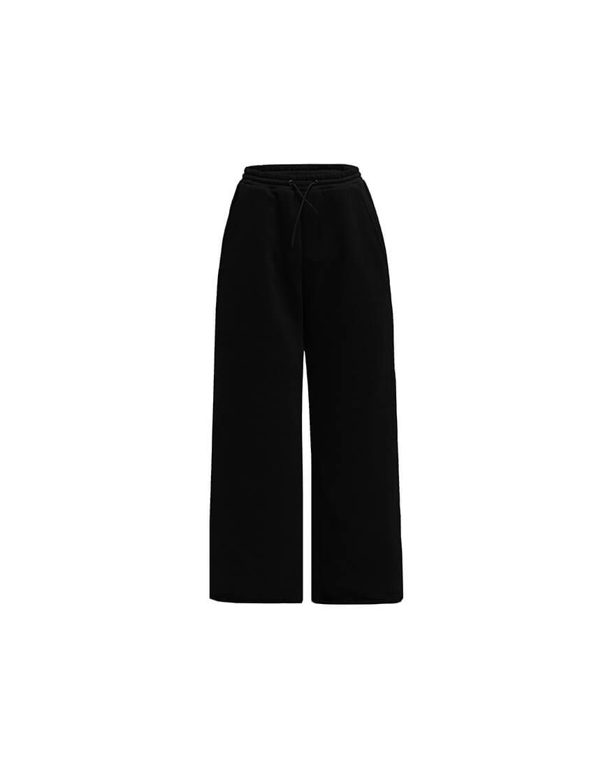 Прямі широкі брюки з необробленими краєм тканини внизу, дві бокові кишені, пояс з вбудованою куліскою.