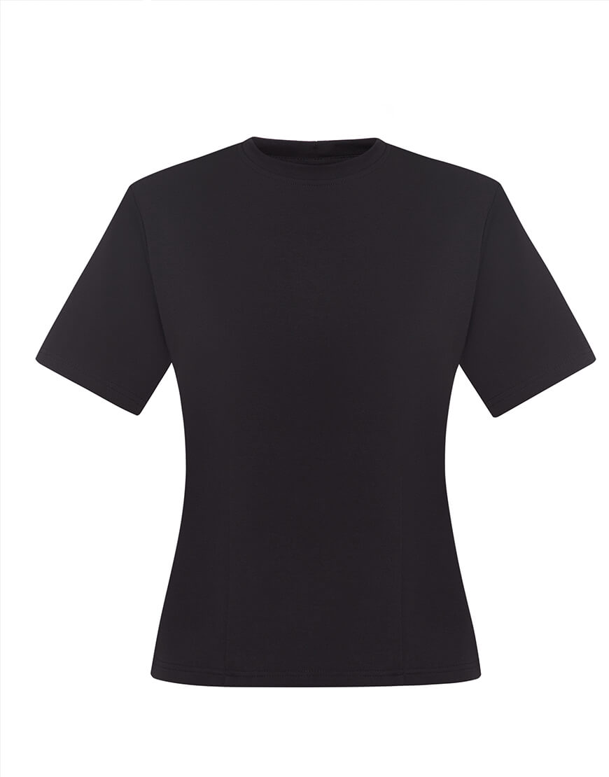 Футболка з плечіма, приталена від низу за допомогою виточення