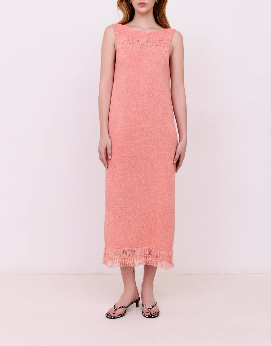 Сукня міді з бахромою – Кораловий