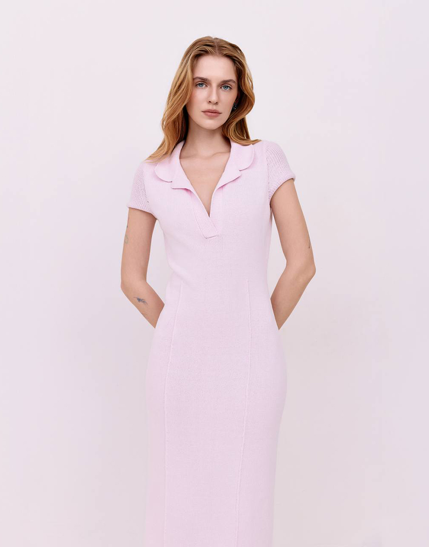Сукня міді з коміром-поло – Рожевий