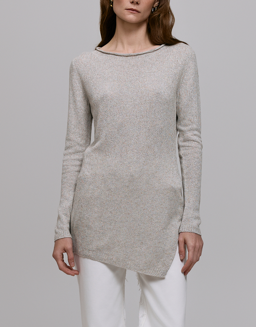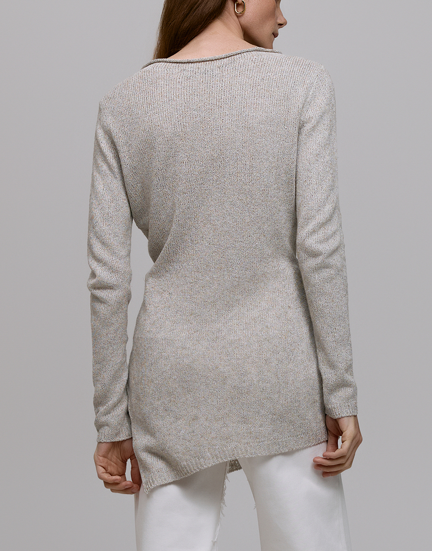 В’язаний лонгслів приталеного силуету з круглим вирізом, асиметричний поділ з боковим розрізом